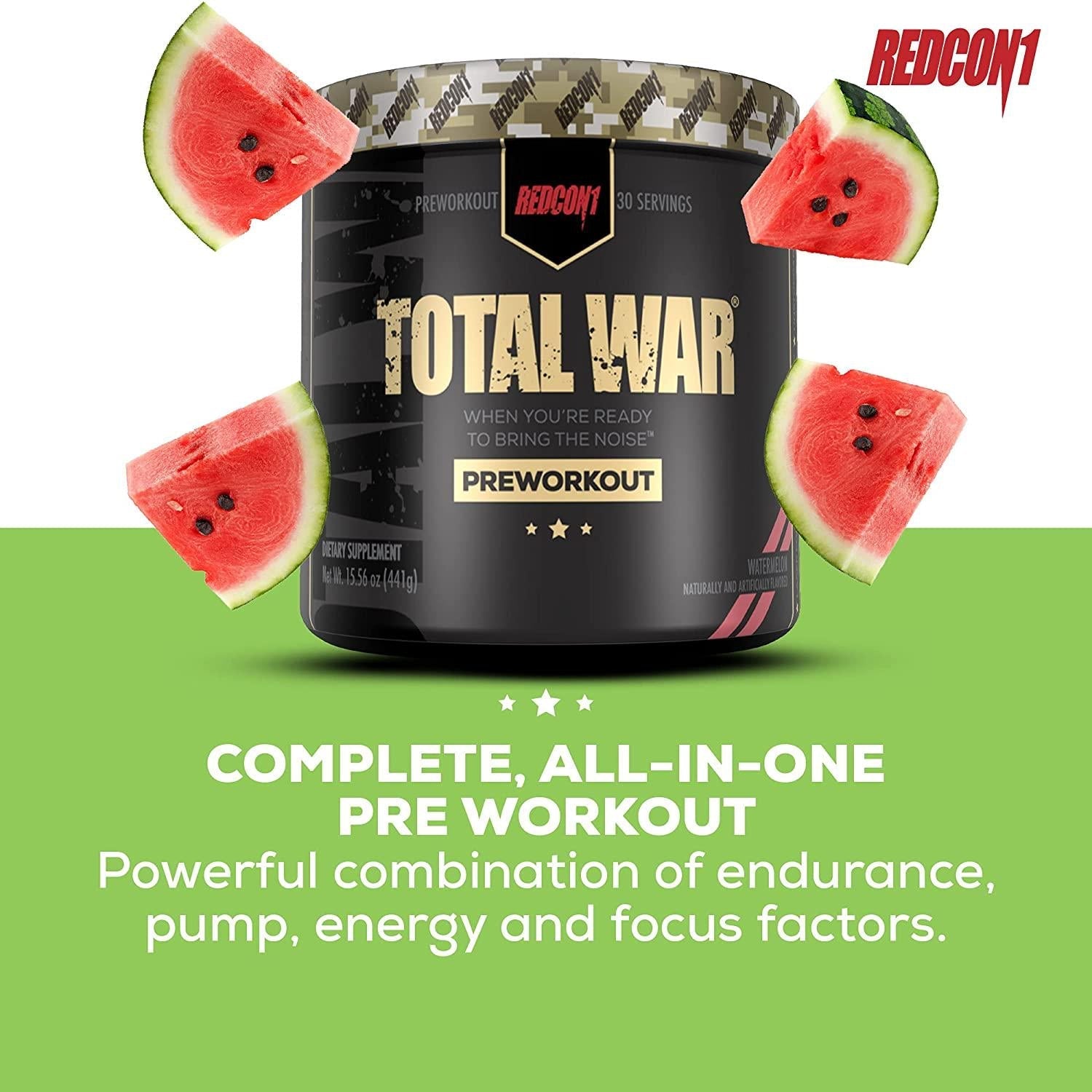 Redcon1 Total War - Pre Workout, 30 Servings, Boost Energy, Increase Endurance and Focus, Beta-Alanine, Caffeine (Watermelon)
