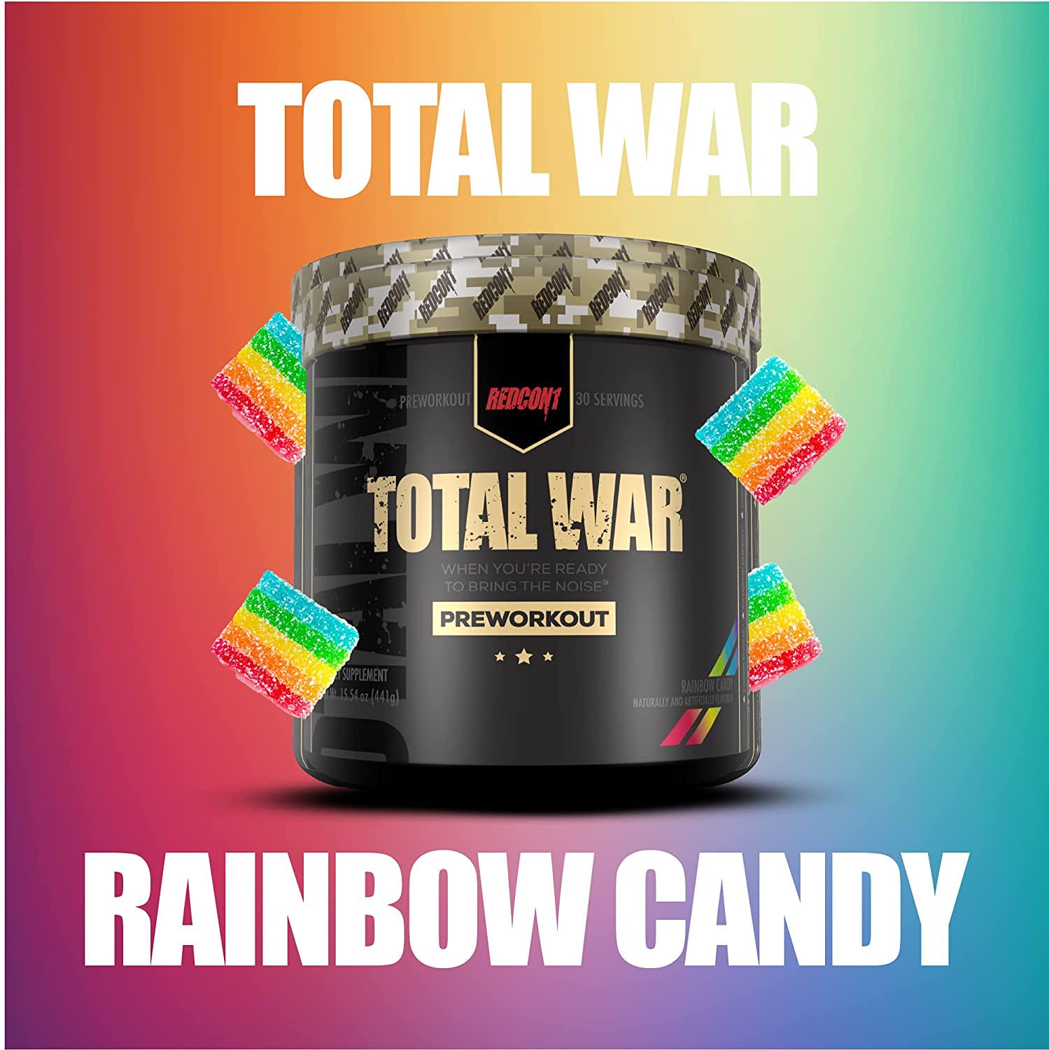Redcon1 Total War - Pre Workout, 30 Servings, Increase Energy, Increase Endurance and Focus, Beta-Alanine, 350mg Caffeine, Nitric Oxide Booster - Keto Friendly (Rainbow Candy, 30 Servings)
