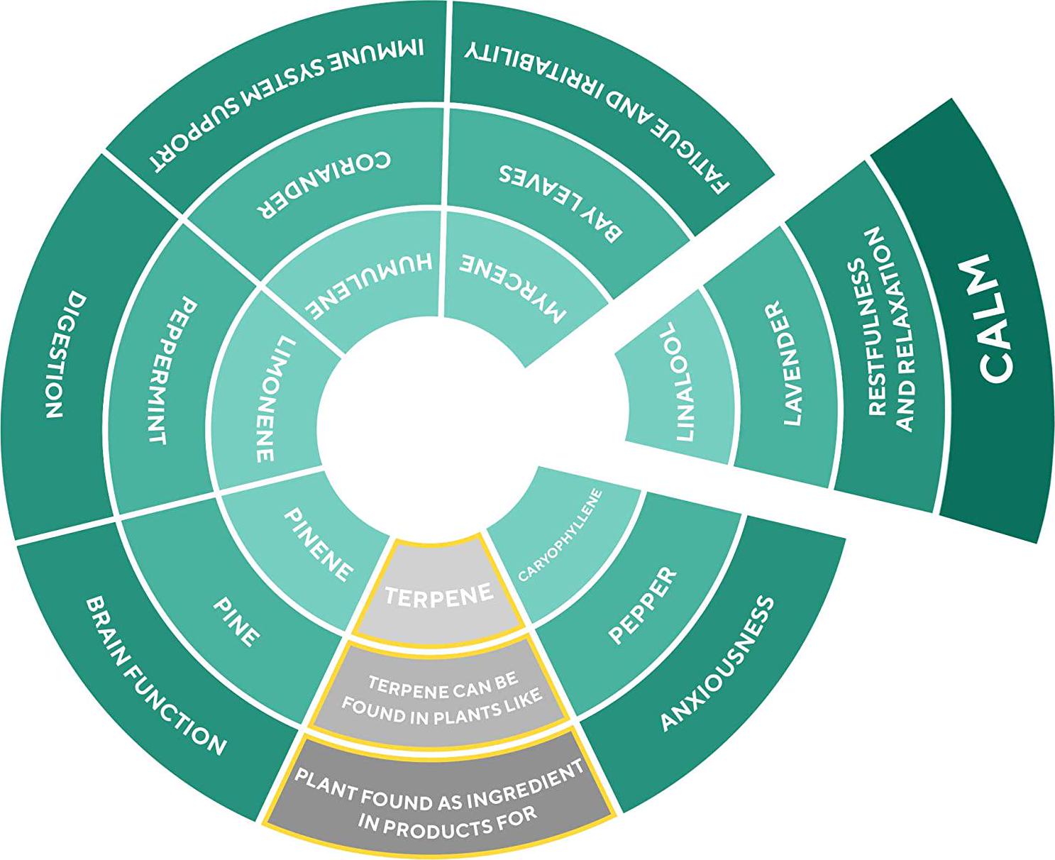 - FINELY TUNED FORMULA FROM NATURE - Rellies' CALM tincture is formulated using natural terpenes, including Linalool, Myrcene, Alpha Terpinene, Alpha Terpineol, and Alpha-Pinene derived from natural sources lavender, citrus, herbs, clove, birchwood and others.
