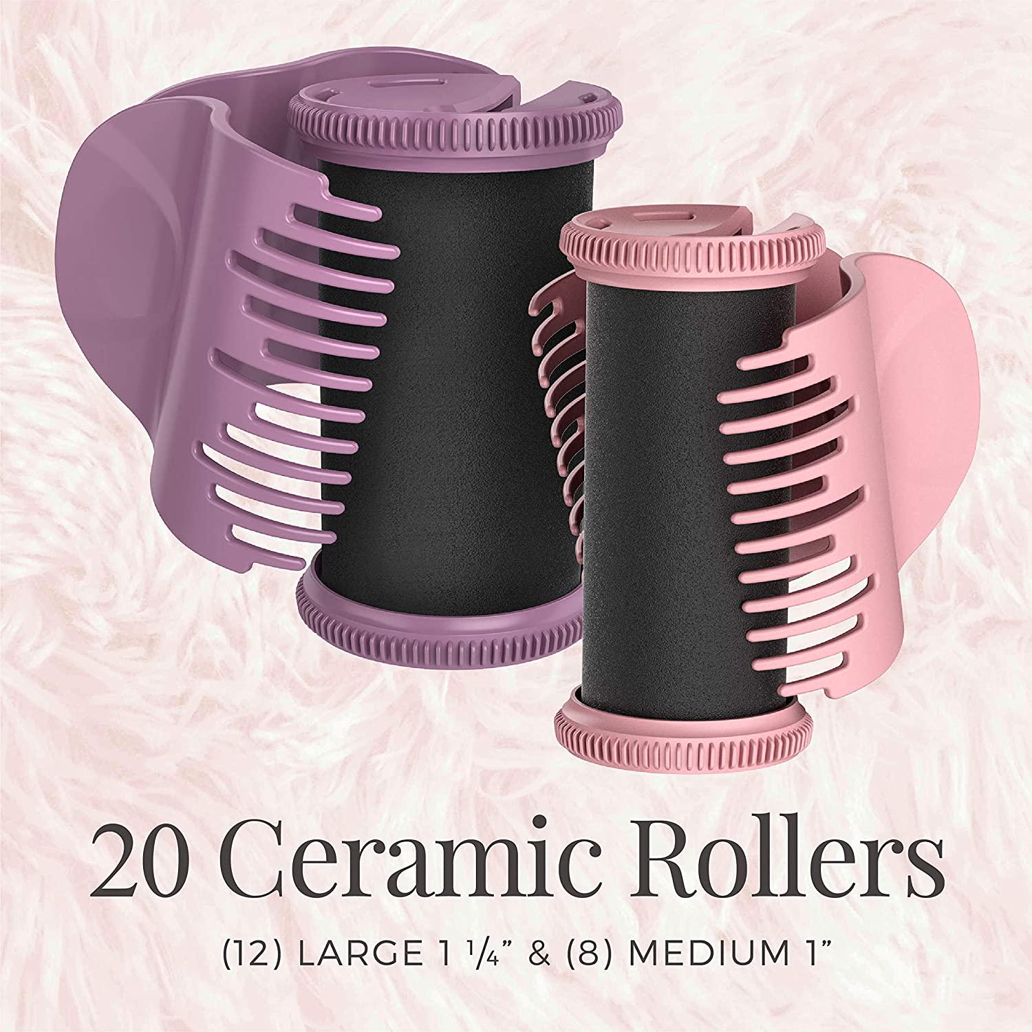 20-count, ceramic-coated rollers, fast heat-up, remington pro hair setter, rose, thermaluxe technology