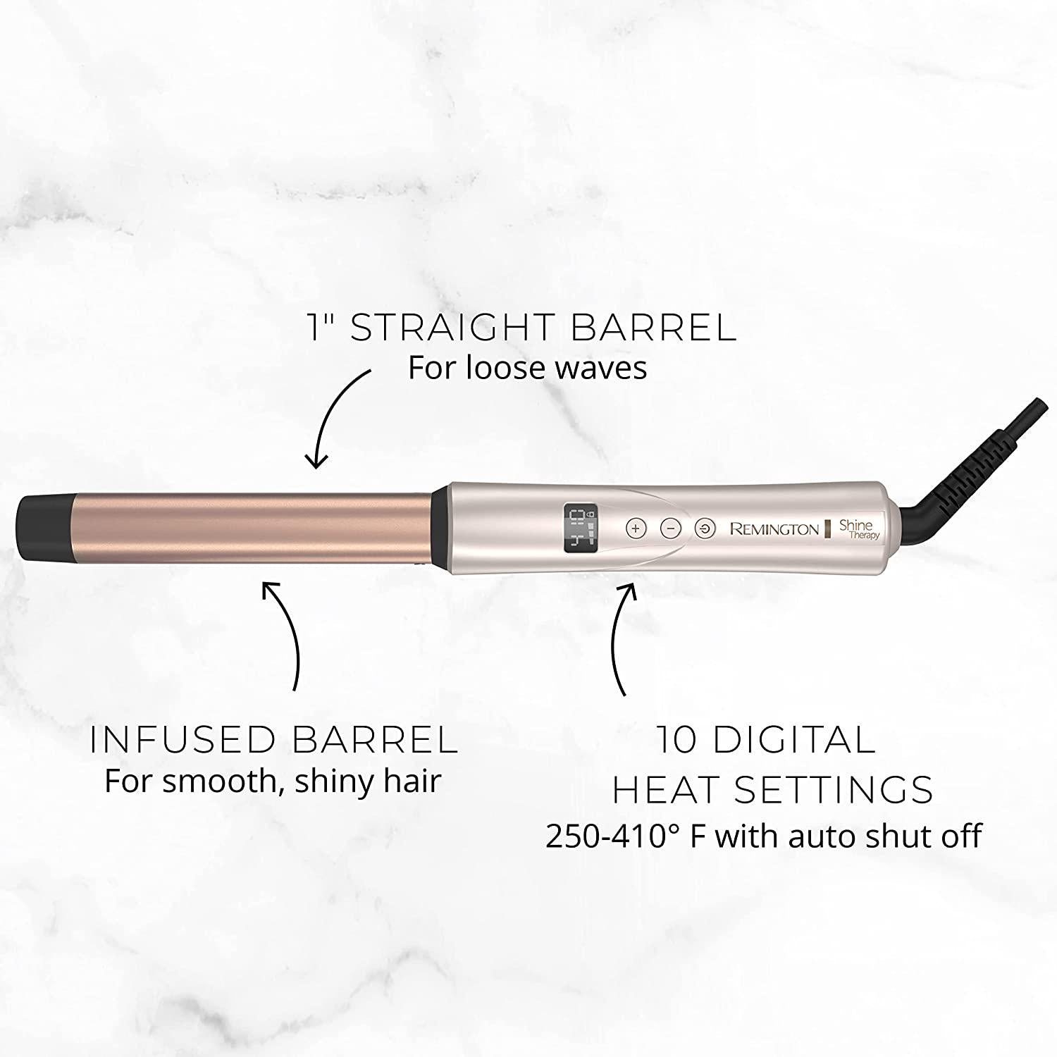 REMINGTON Shine Therapy Argan Oil and Keratin Infused 1 Inch Straight Barrel Curling Wand for Loose Waves, Includes Heat Glove