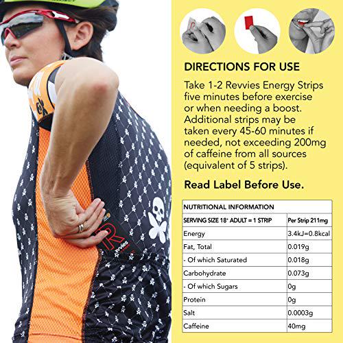 40mg caffeine, cola lemon, energy boost, revvies energy strips, sugar-free, usa, vegan