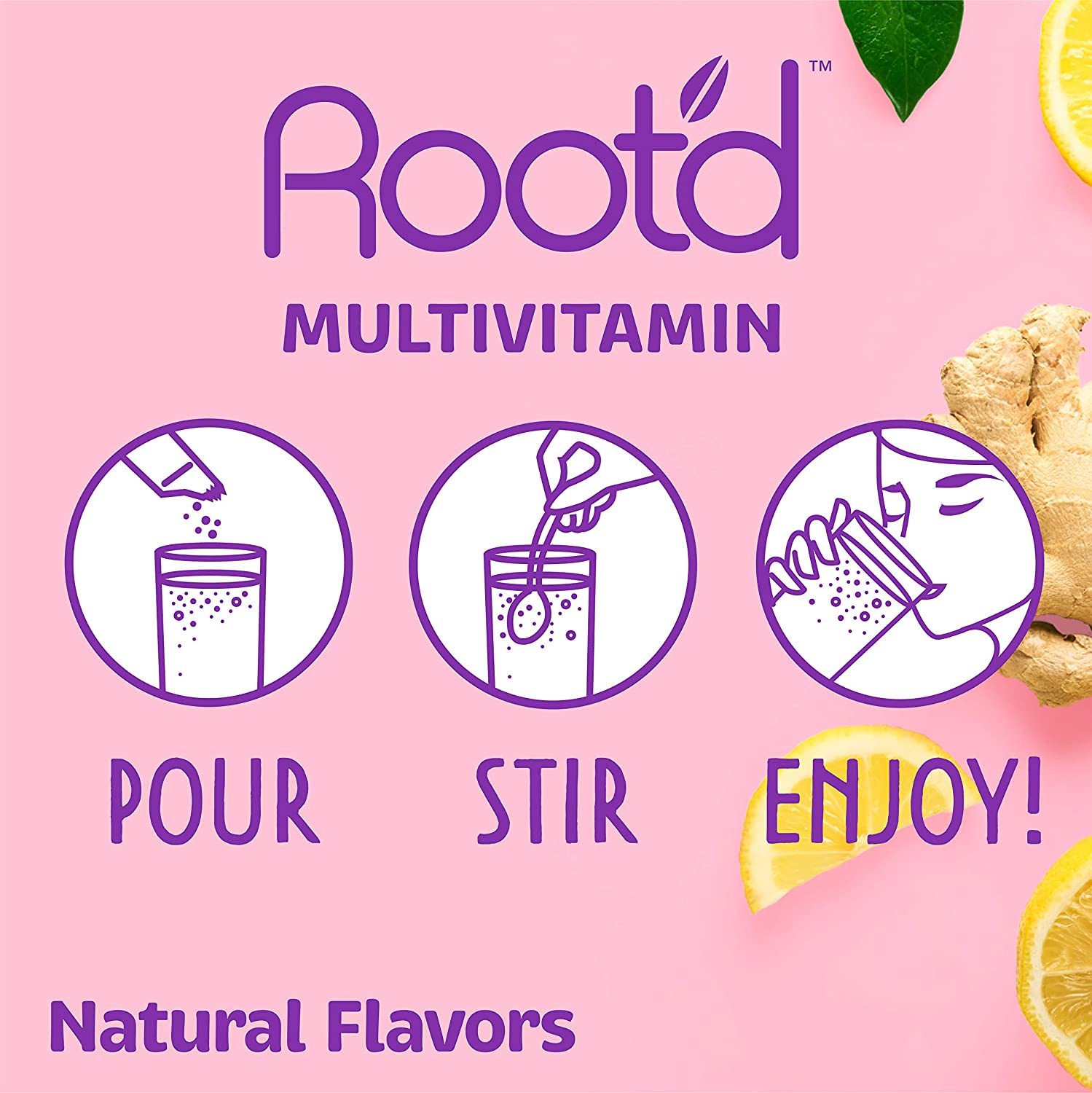 Rootd - Powder Prenatal Vitamin - Pregnancy Multivitamin with 25 Vitamins and Minerals A, C, D, E, B12, B6, K, Iron, Folate, Probiotics, Organic Super Greens | Lemon Ginger | 24 Effervescent Stick Packs