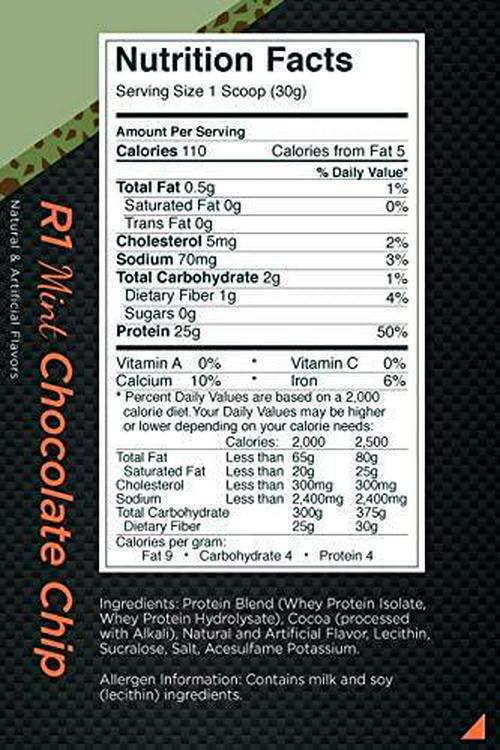 1kg, 38 servings, lean mass, mint chocolate chip, rule1 r1 protein, whey isolate