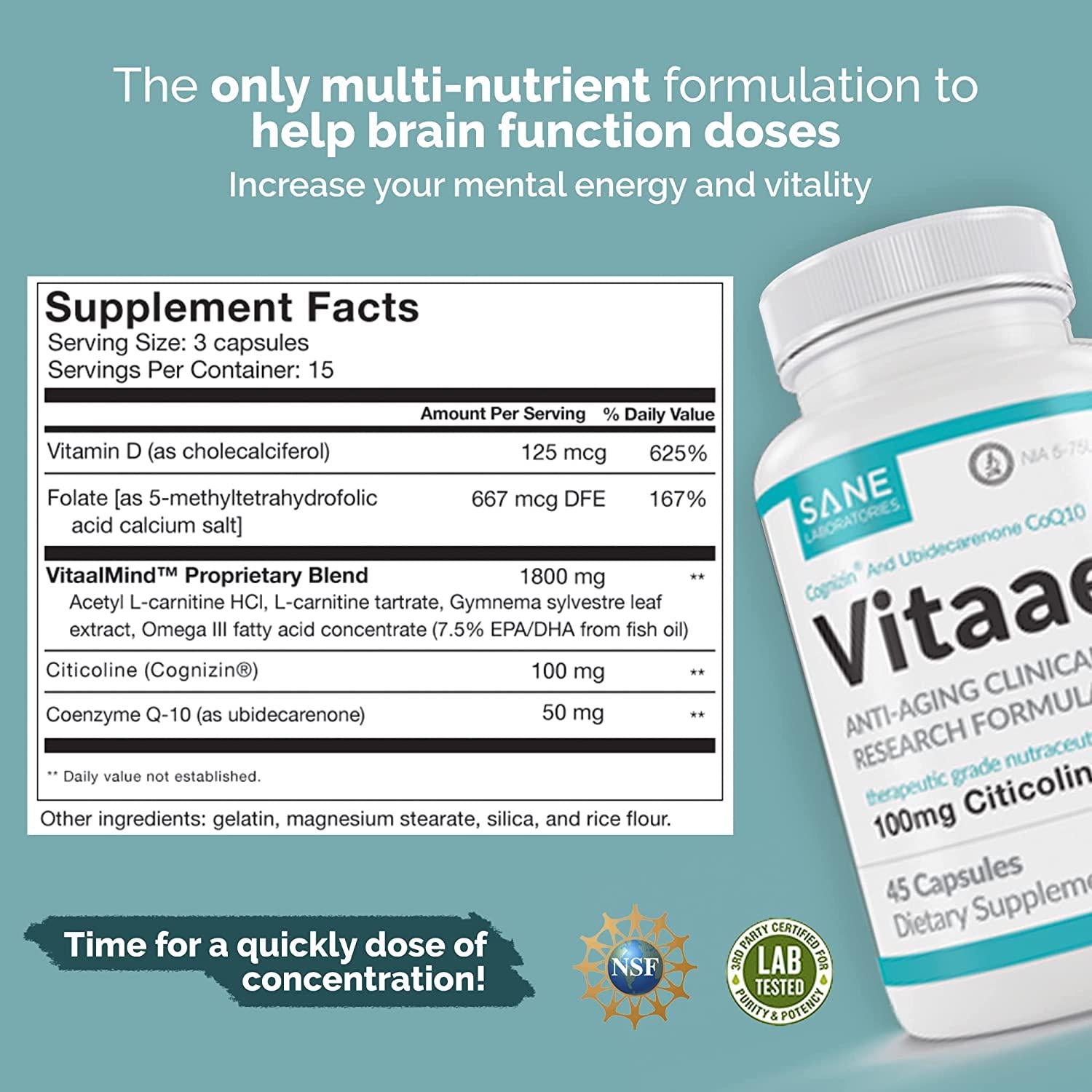 SANE Vitaae Memory Supplement 2-Month Supply +Free Aamia Supplement Pills