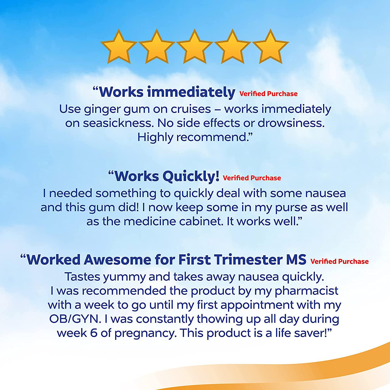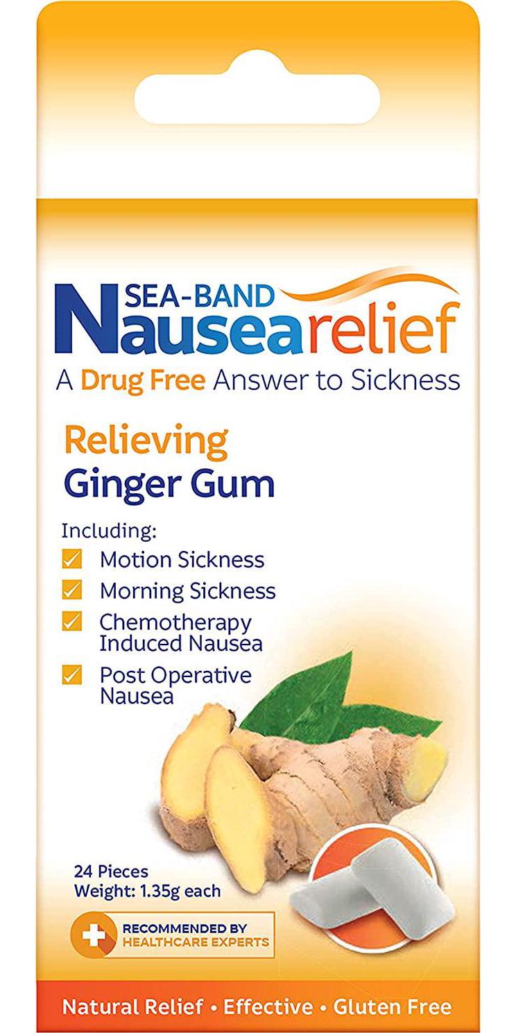 Sea-Band Anti-Nausea Ginger Gum - 24 Pieces. DRUG-FREE OPTION for the relief of nausea due to travel, morning sickness, and post-operative or chemotherapy-induced nausea. None of the common side-effects associated with anti-nausea medication such as drowsiness, disorientation & dry mouth. This product is manufactured in united states.