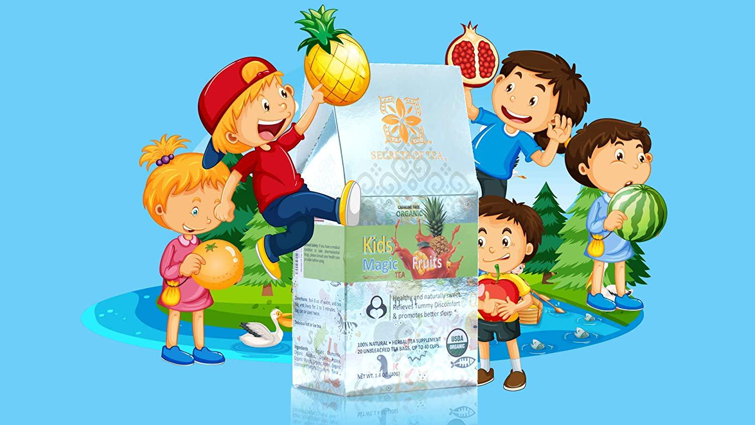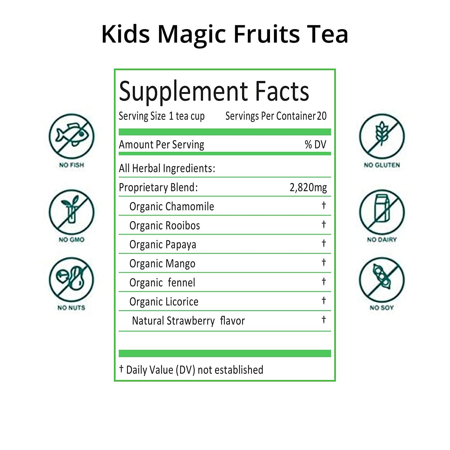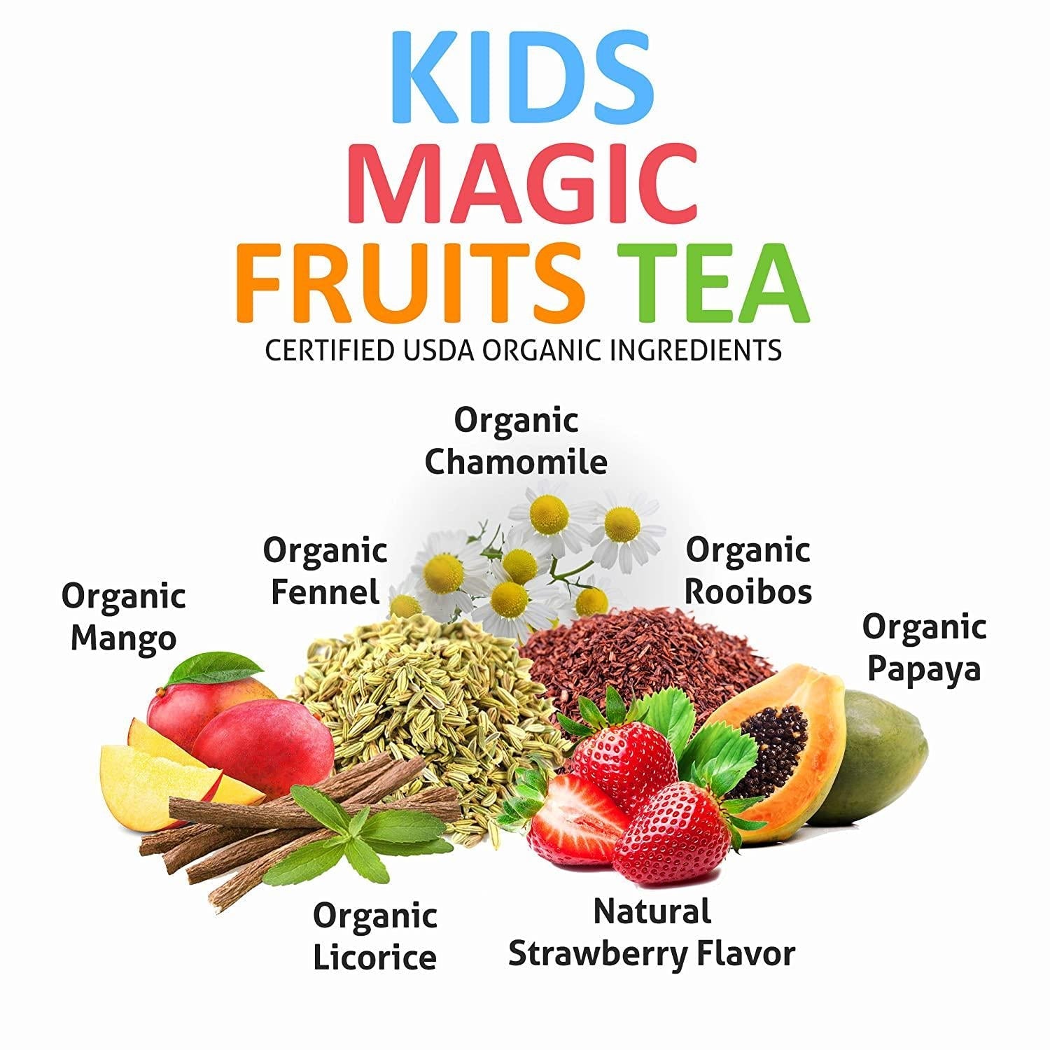 Secrets Of Tea Kids Magic Tea for kids better sleep, Better Digestion... - Natural USDA Organic Caffeine-Free Healthy Herbal Drink for Children, Toddlers - Fruits Flavor - Up to 40 Servings - 20 Count(1 Pack)