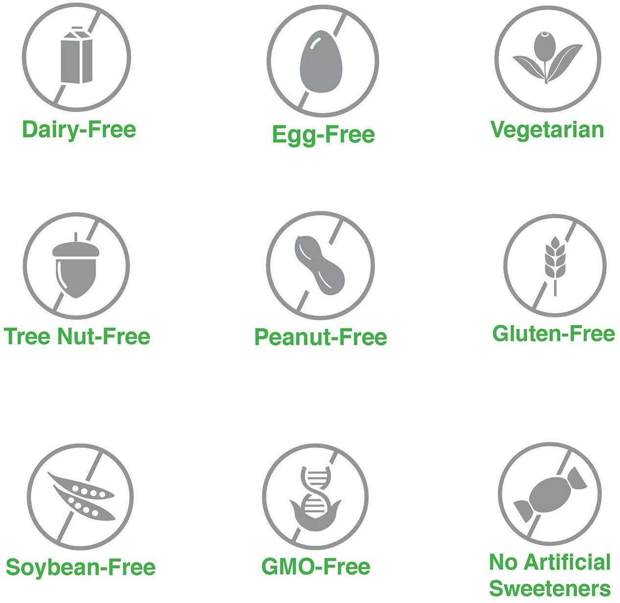 - DOES NOT CONTAIN milk, eggs, fish, shellfish, tree nuts, peanuts, wheat, soy, GMO, or preservatives.