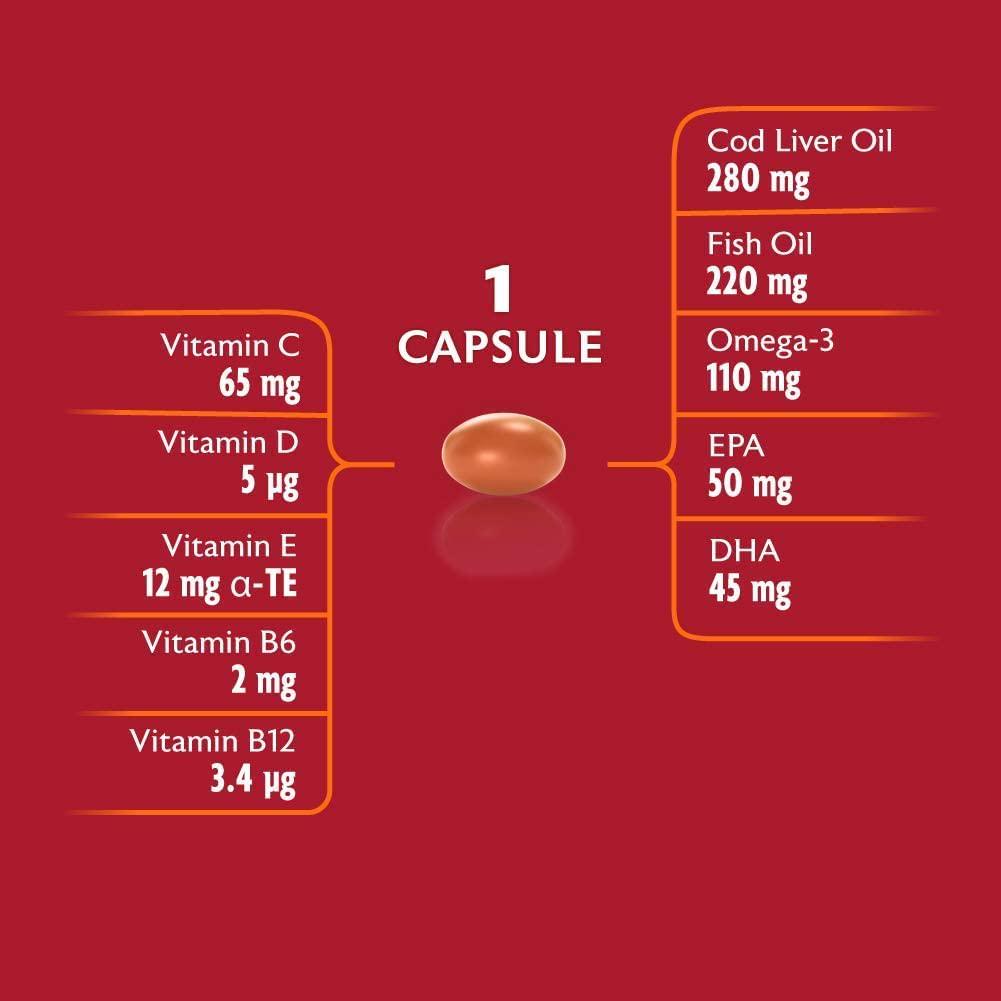 - 2-in-1 for even more health benefits, Packing in Cod Liver Oil plus high level Multivitamins into just one capsule gives you greater health benefits