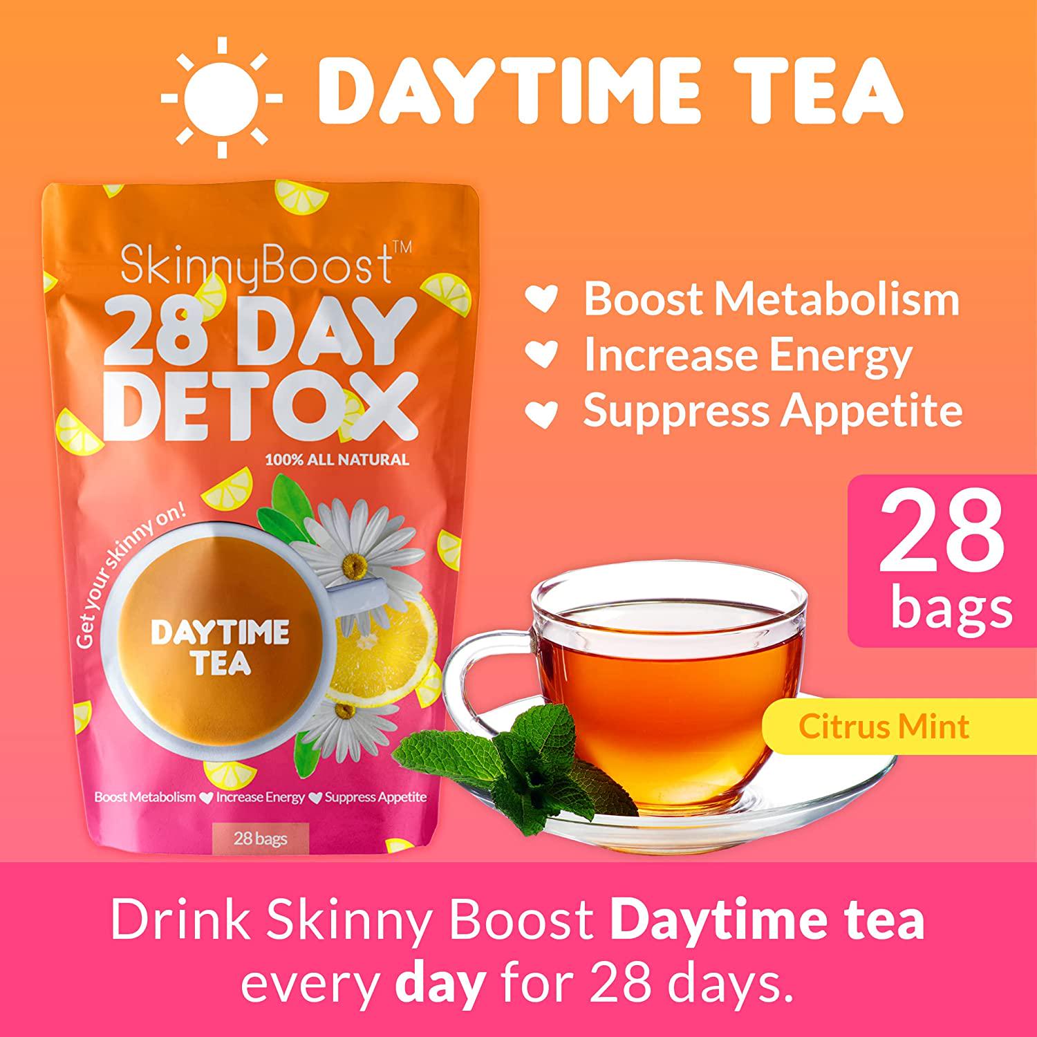 Skinny Boost 28 Day Detox Daytime Tea -(28 Tea Bags) Supports Metabolism Boost, Detox, All Natural, Non GMO, Vegan, Keto Friendly