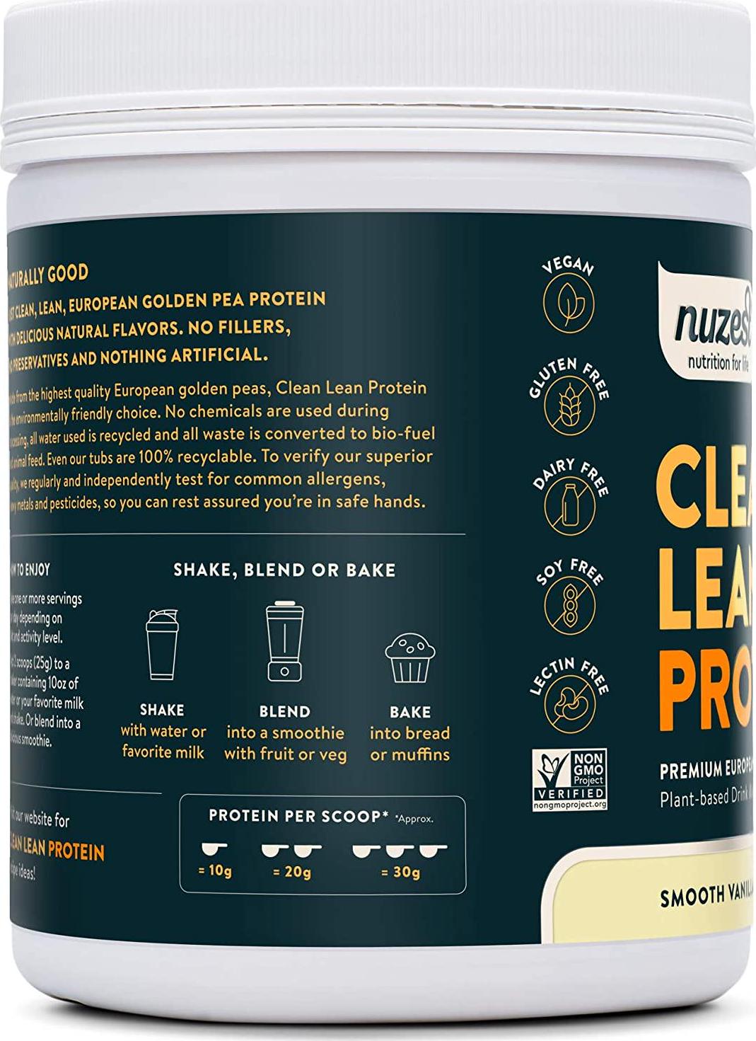 Smooth Vanilla Clean Lean Protein Nuzest - Premium Vegan Protein Powder, Plant Based Protein Powder, Vanilla Protein Powder, Dairy Free, Gluten Free, GMO Free, Naturally Sweetened Protein Shake, 20 Servings, 1.1 lb