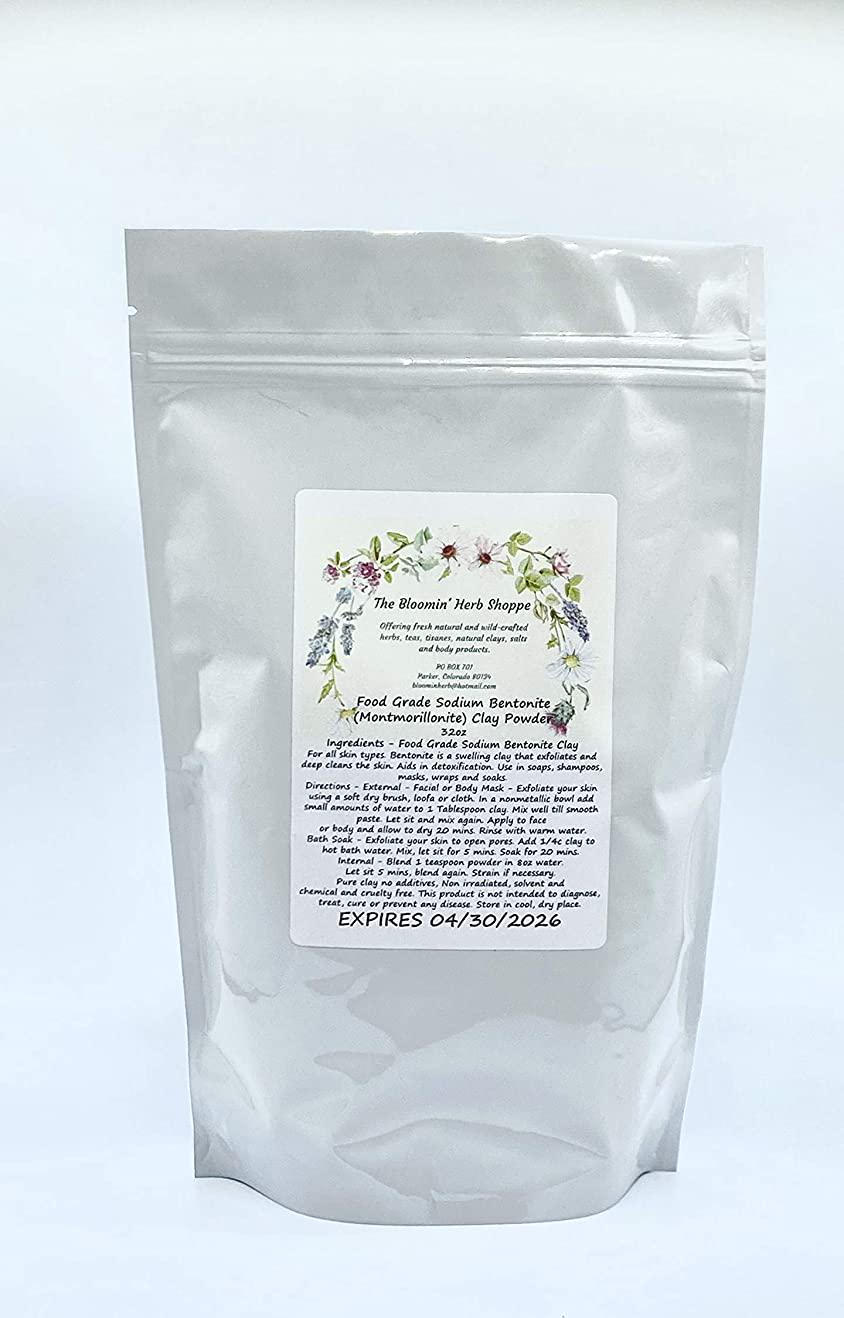 Sodium Bentonite Clay Food Grade Fine Powder Bulk | 32oz 2lbs | Internal External | The Bloomin Herb Shoppe | Mined in The Big Horn Wyo | Detox | Water Washed no Chemicals | Masks Wraps spa