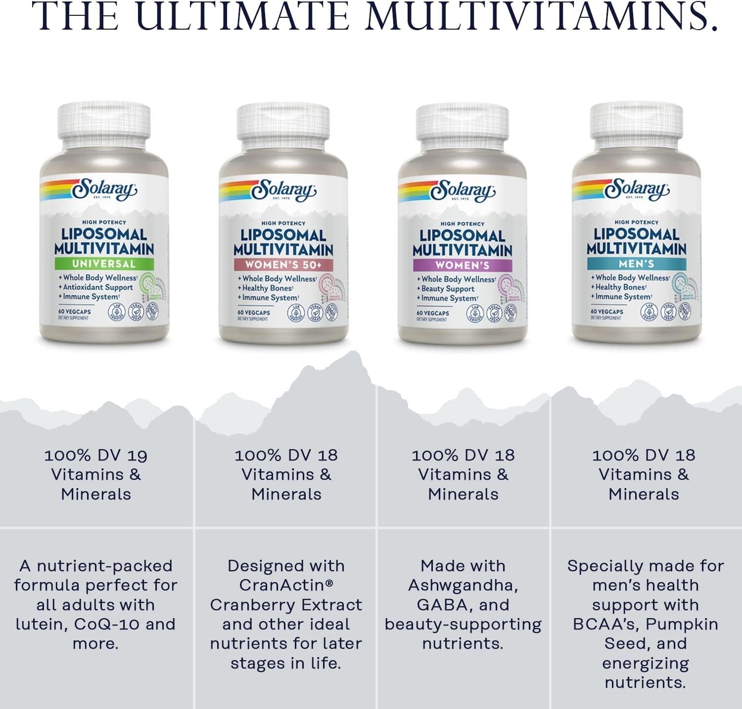Solaray Liposomal Multivitamin for Men and Women, High Potency, Enhanced Absorption Vitamin C, Vitamin D, Biotin, Methyl B-12, Odor Neutral and Gentle Digestion, 30 Servings, 60 VegCaps