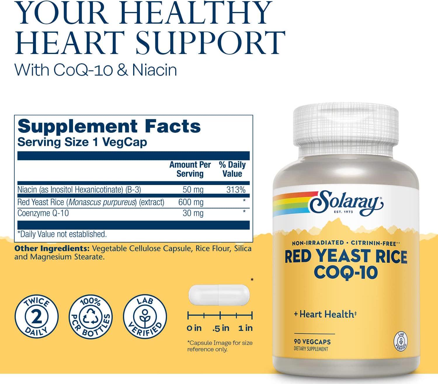 Solaray Red Yeast Rice + COQ-10 VCapsules, 90 Count