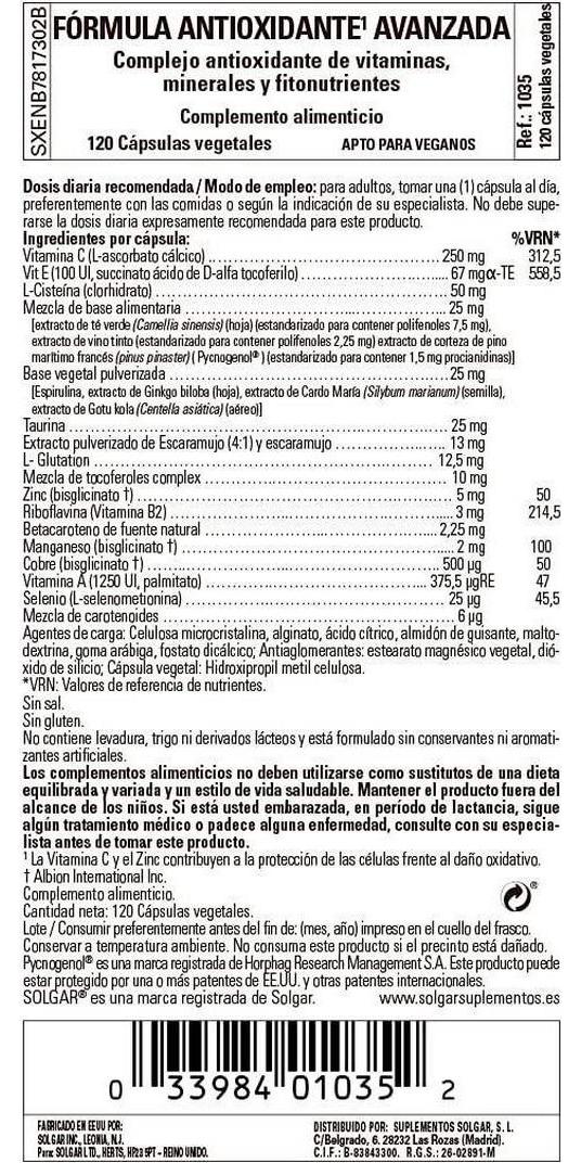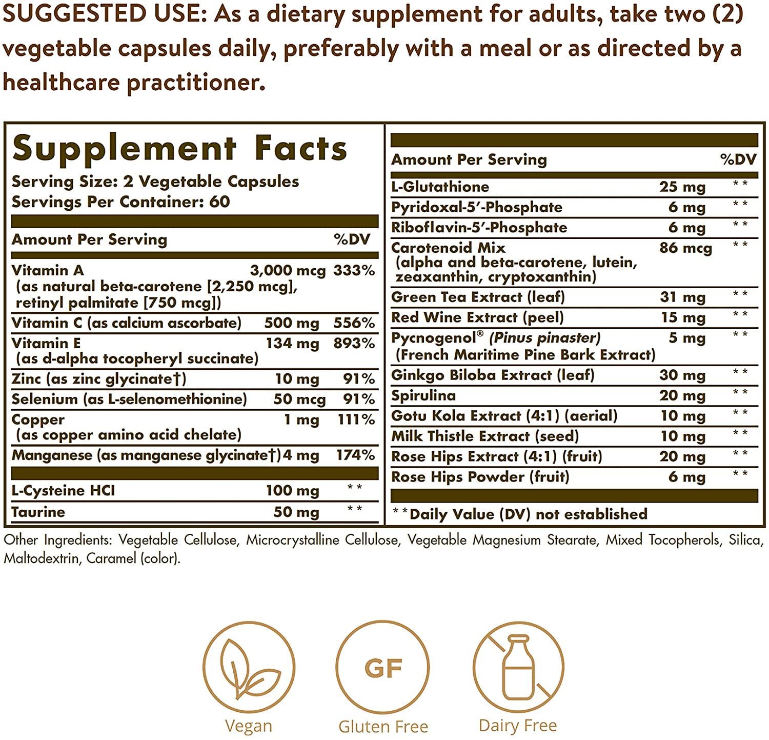 advanced antioxidant, antioxidant protection, capsules, solgar, vegetarian formula