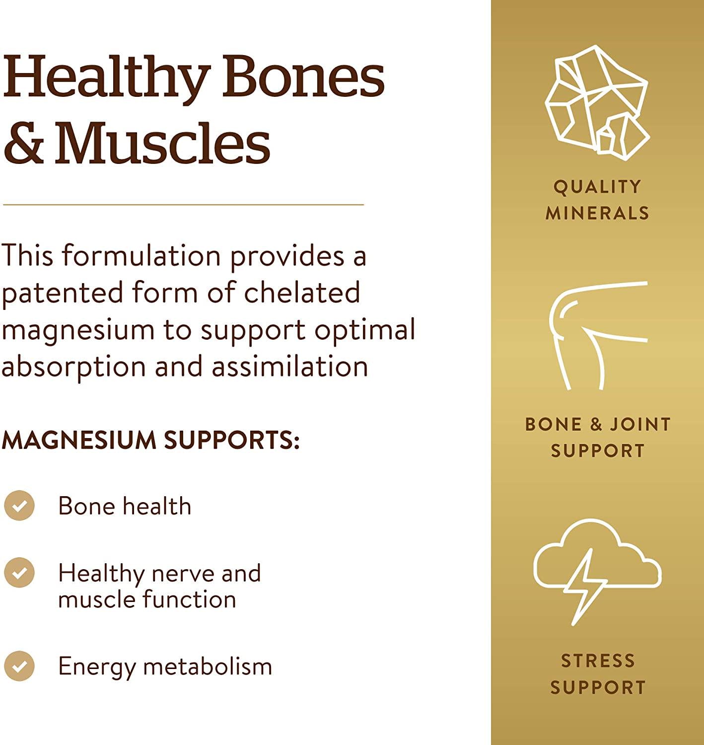 calcium transport, energy production, muscle function, nerve function, solgar chelated magnesium tablets, vegetarians