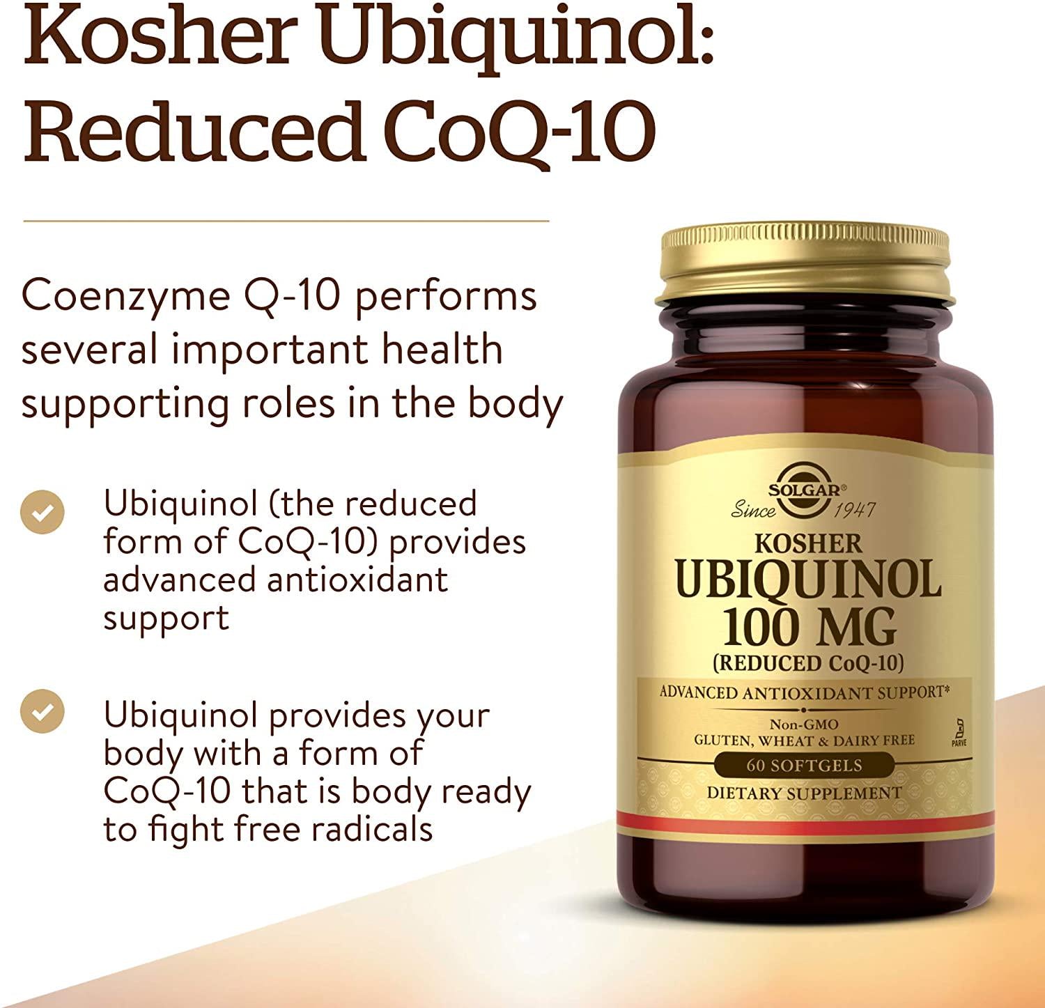 - Kosher Heart Health; This formula offers a kosher form of ubiquinol softgels to support heart health and overall health; By supplementing with ubiquinol, you are providing your body with a reduced form of CoQ-10 that is in a ready-to-use state