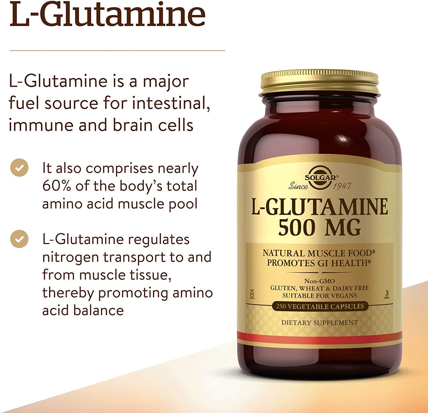 250 count, 500 mg, l-glutamine, solgar, suitable for vegetarians, vegetable capsules