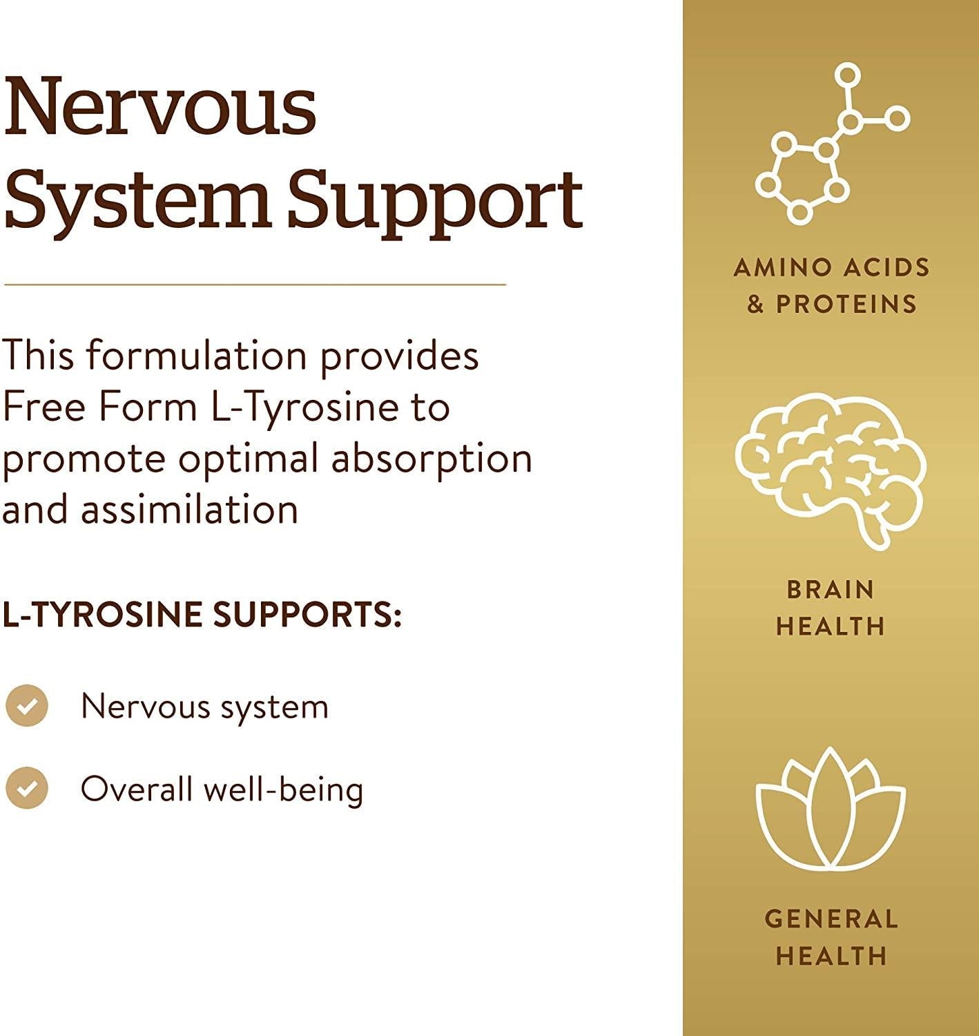 - Brain Support; L-Tyrosine is an amino acid that supports nervous system nutrition, as it is a precursor of the neurotransmitters dopamine, norepinephrine & epinephrine