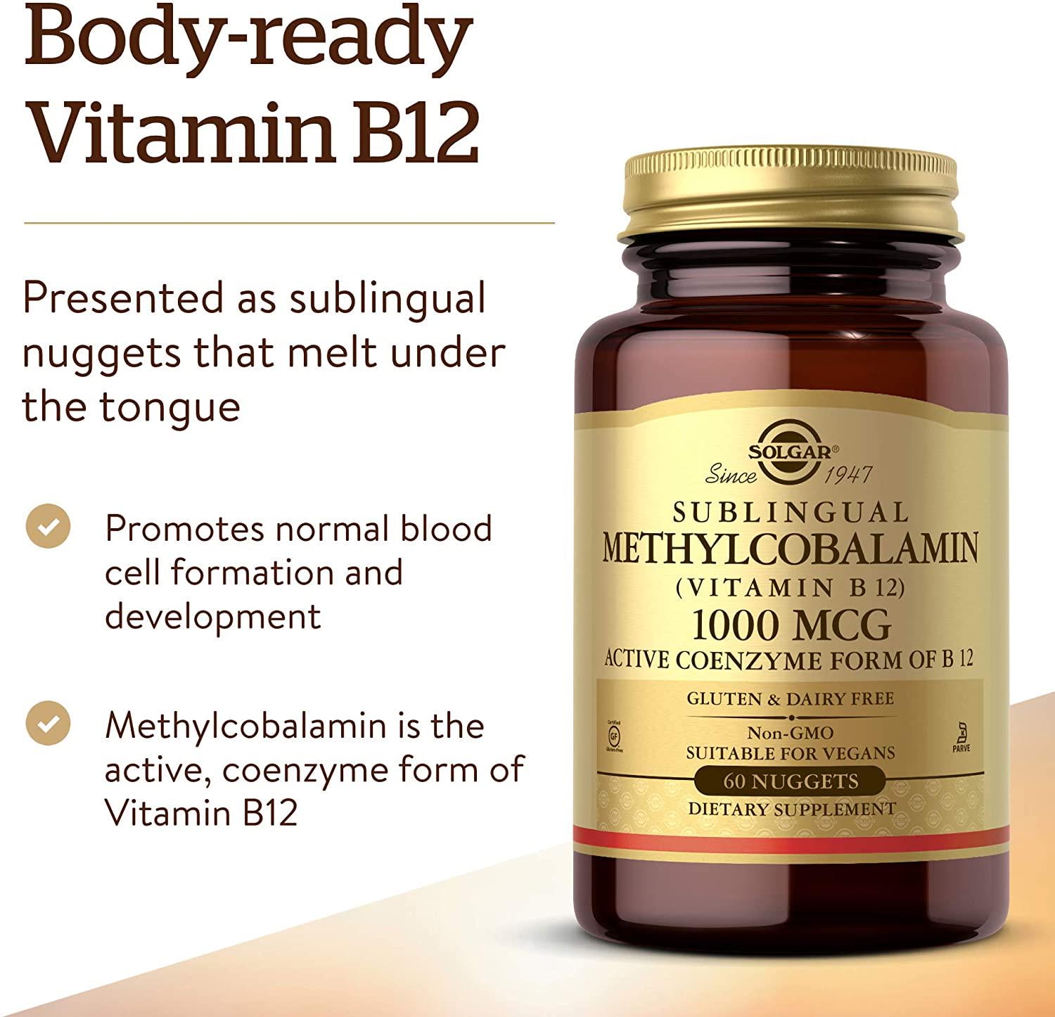- EASY TO ABSORB: The Vitamin B12 in this formula comes in a convenient sublingual nugget dosage form which makes it body-ready for easy absorption.