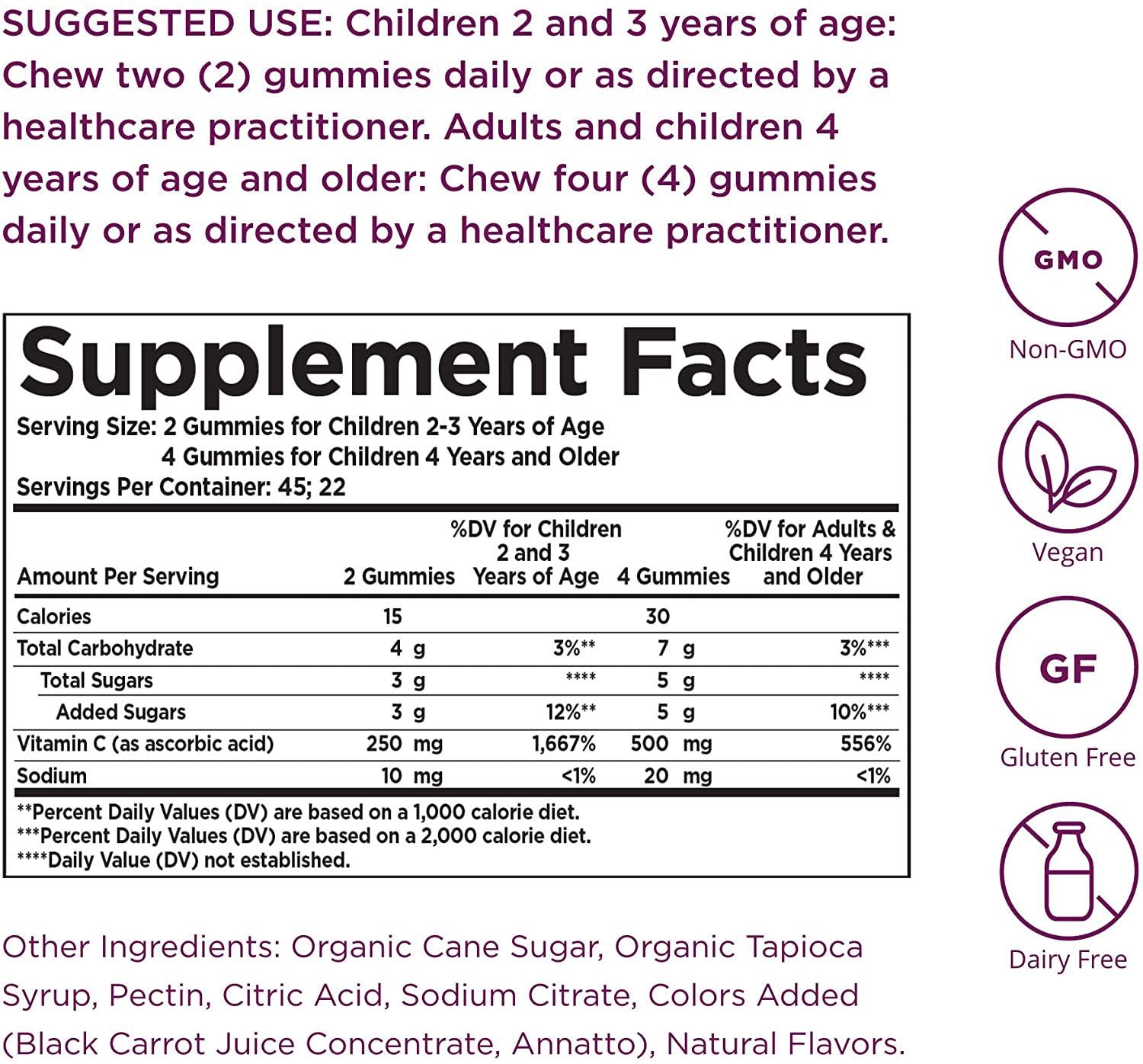 - Immune Support Gummies; Each serving provides 500 mg Vitamin C, per 4 gummies for kids 4 years and older, or 250 mg Vitamin C, per 2 gummies for kids 2 and 3 years of age; Can be taken with other Solgar U-Cubes Multi and Calcium with D3 products