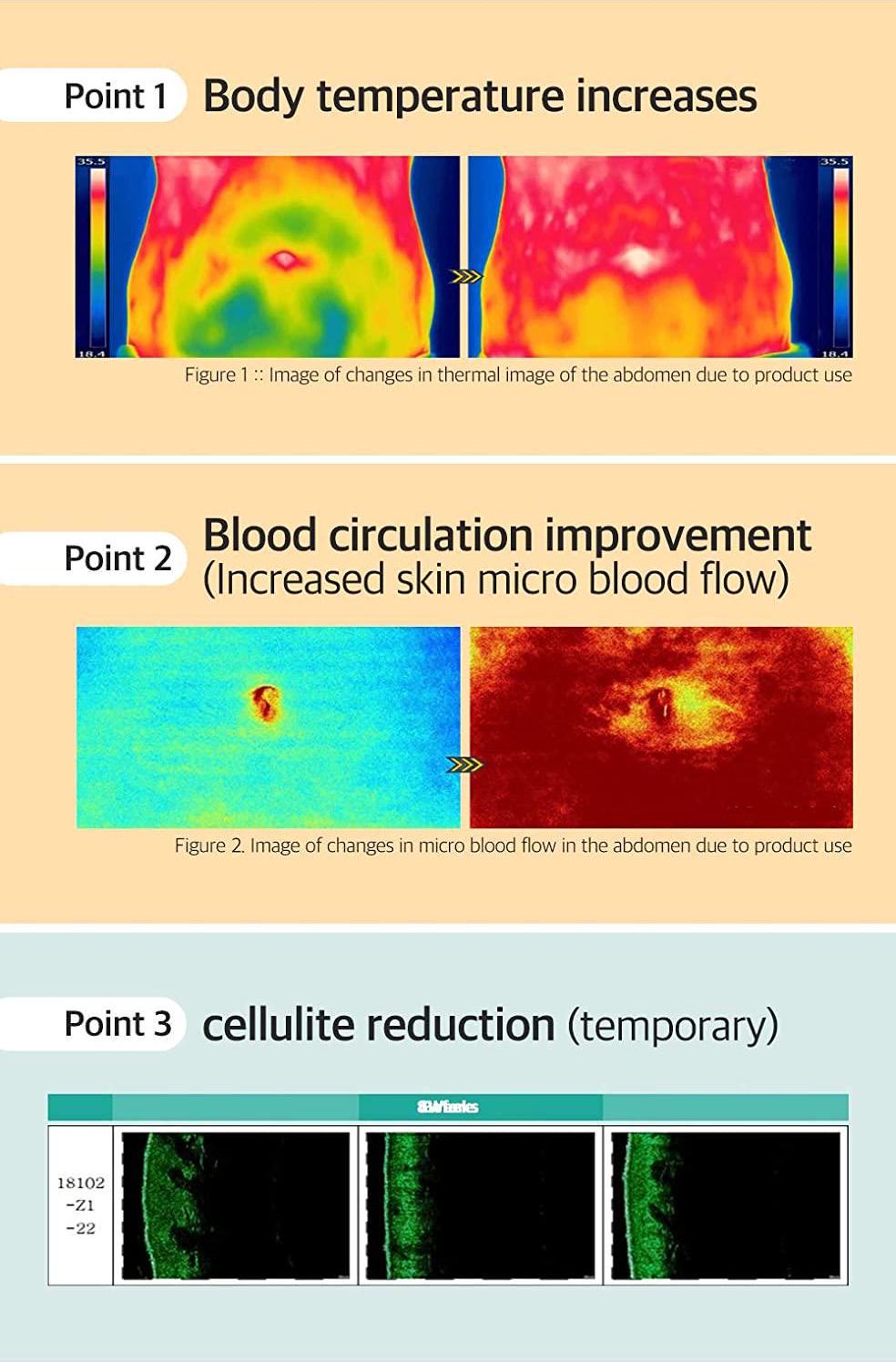 It can work to transform slimming and contouring abdomen, hip, legs and arms based on heating and stimulating process.