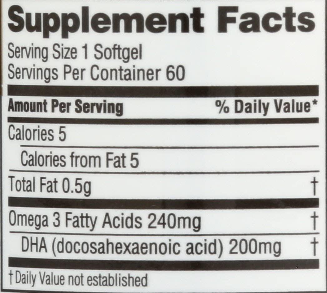 - One 60 count bottle of Spectrum Essentials Prenatal DHA Softgels