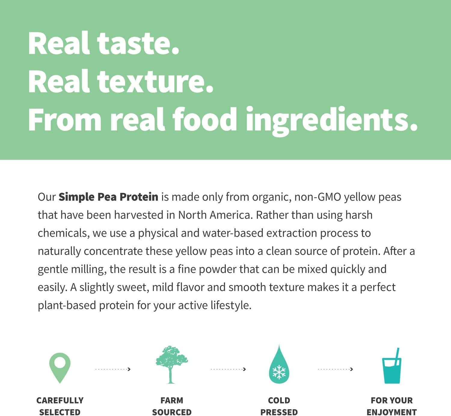 - PURE ORGANIC PLANT PROTEIN POWDER Plant based, organic pea protein powder without artificial sweeteners from 100% pure, North American yellow peas.