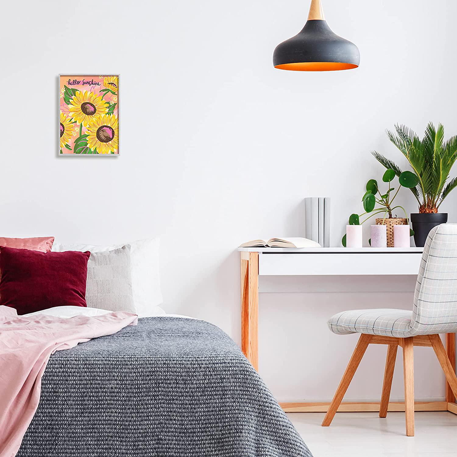 Stupell Industries Hello Sunshine Sentiment Blushing Yellow Sunflowers Small Daisies, Design by Deborah Curiel Gray Framed Wall Art, 11 x 14, Pink
