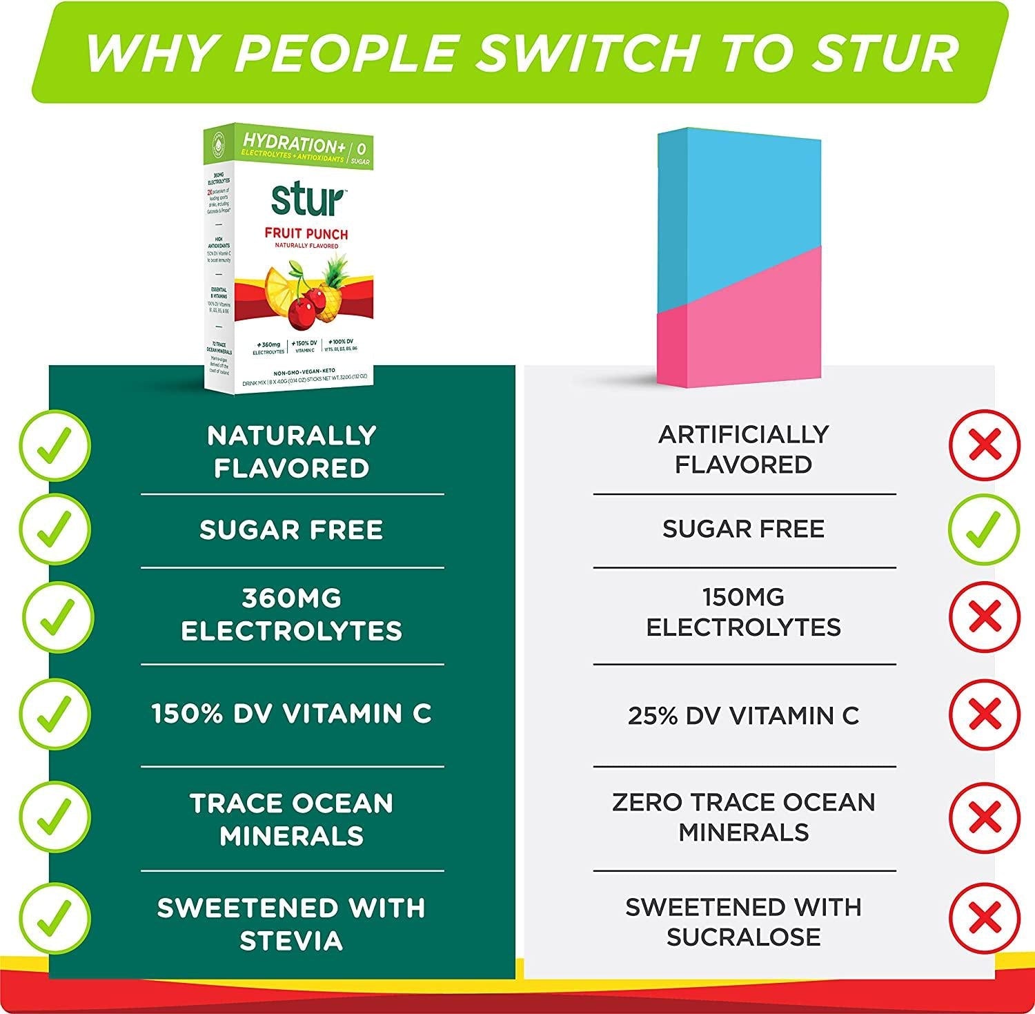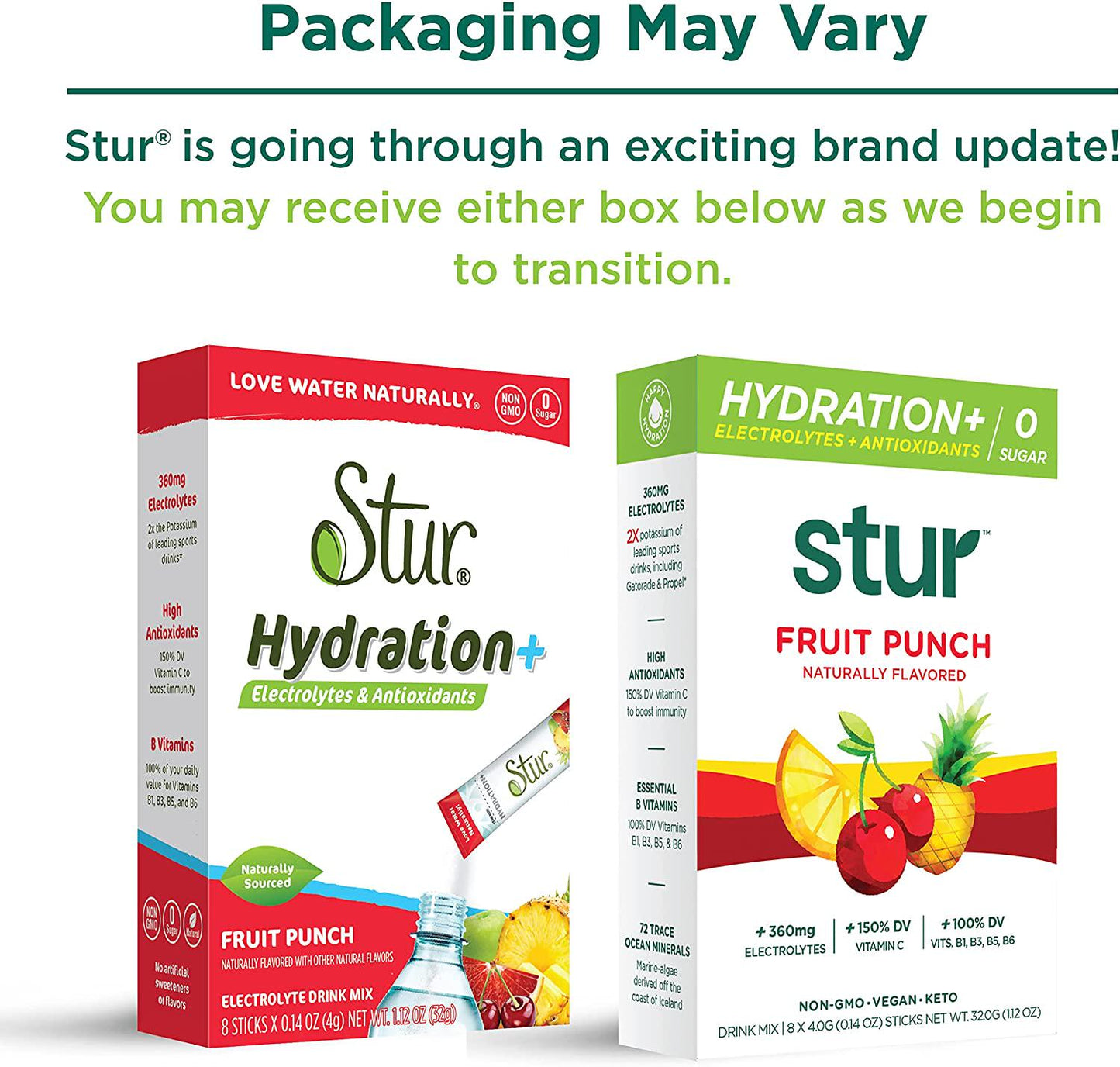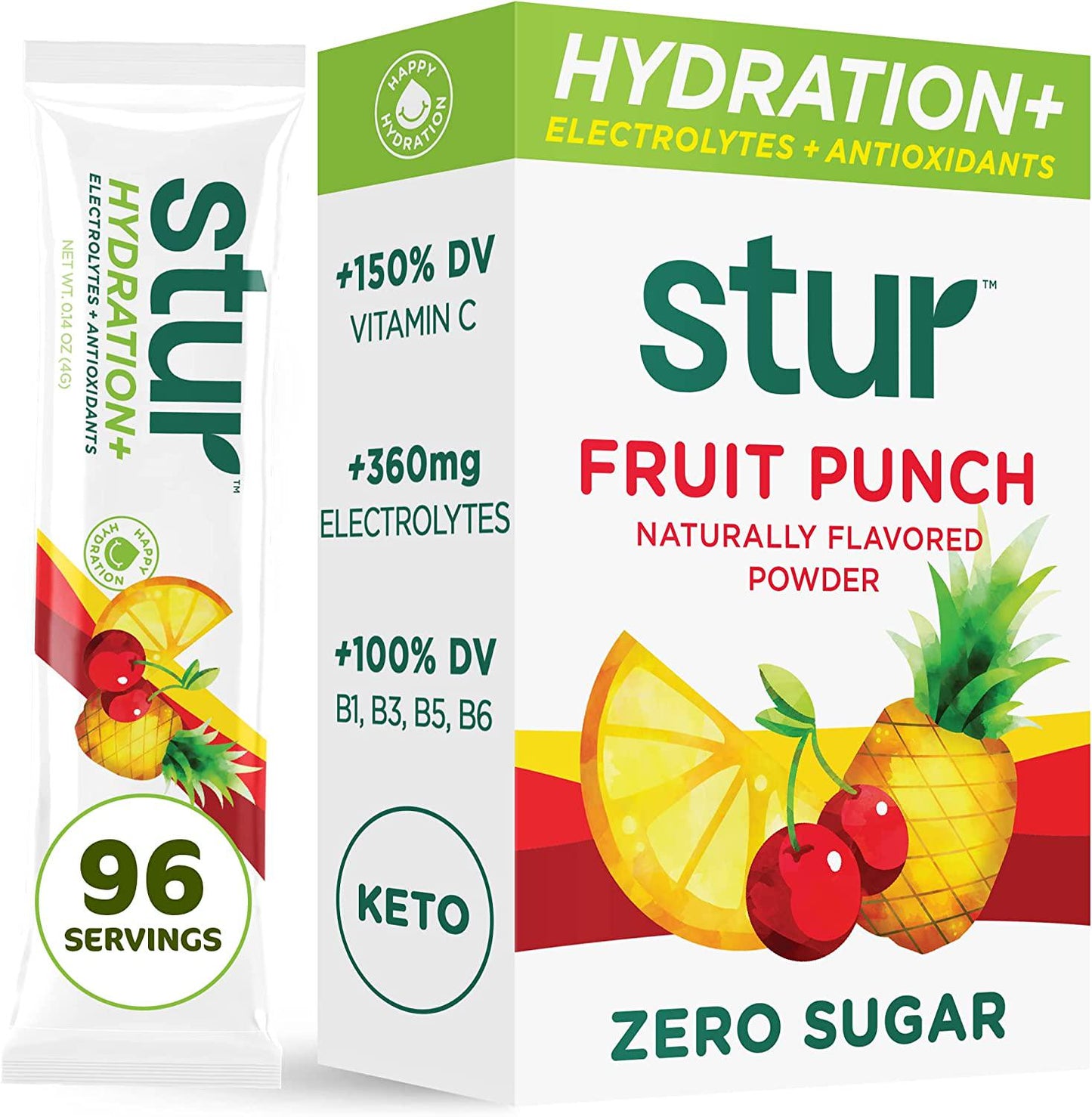 Stur Electrolyte Hydration Powder | Fruit Punch | Sugar Free | High Antioxidants and B Vitamins | Non-GMO | Daily Hydration and Workout Recovery | Keto | Paleo | Vegan (96 Packets)