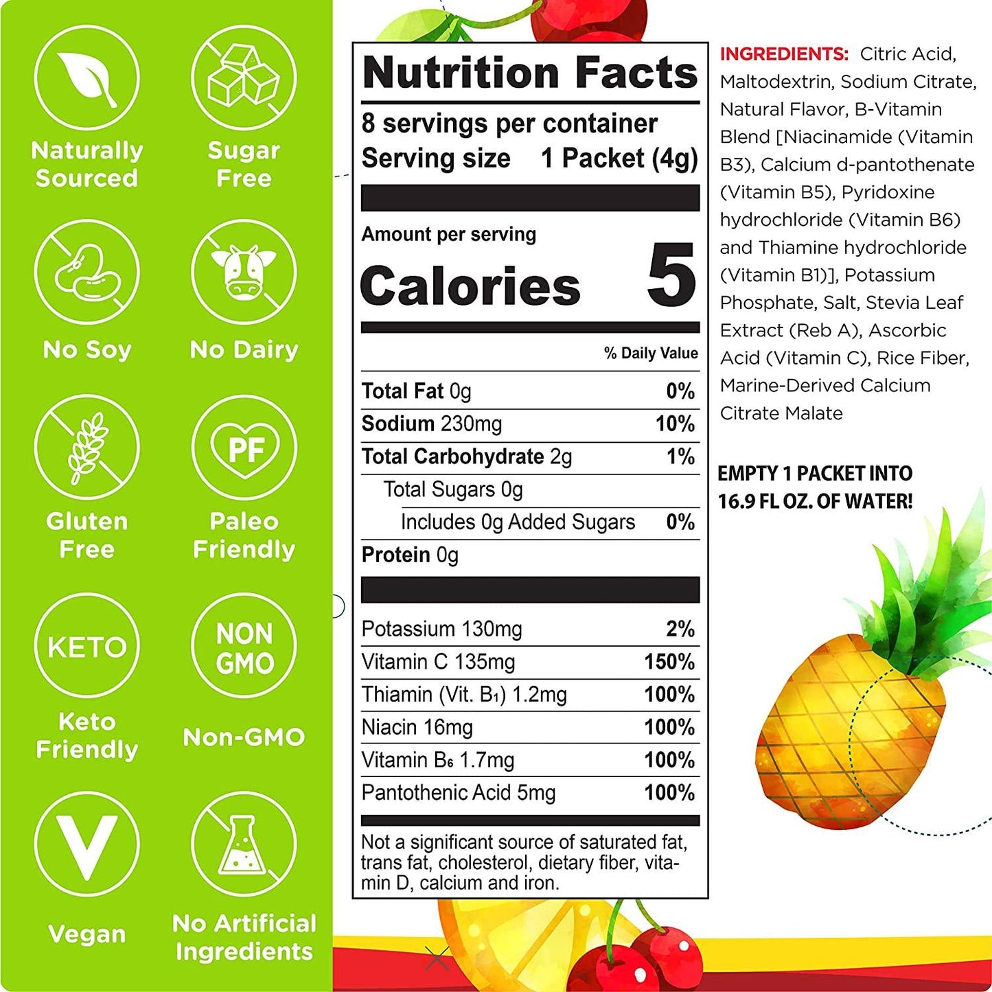 - HYDRATES BETTER THAN WATER - Helps you hydrate quickly and naturally. Our electrolyte powder is packed with Antioxidants & B Vitamins. Zero sugar, non-GMO, no artificial ingredients or sweeteners.