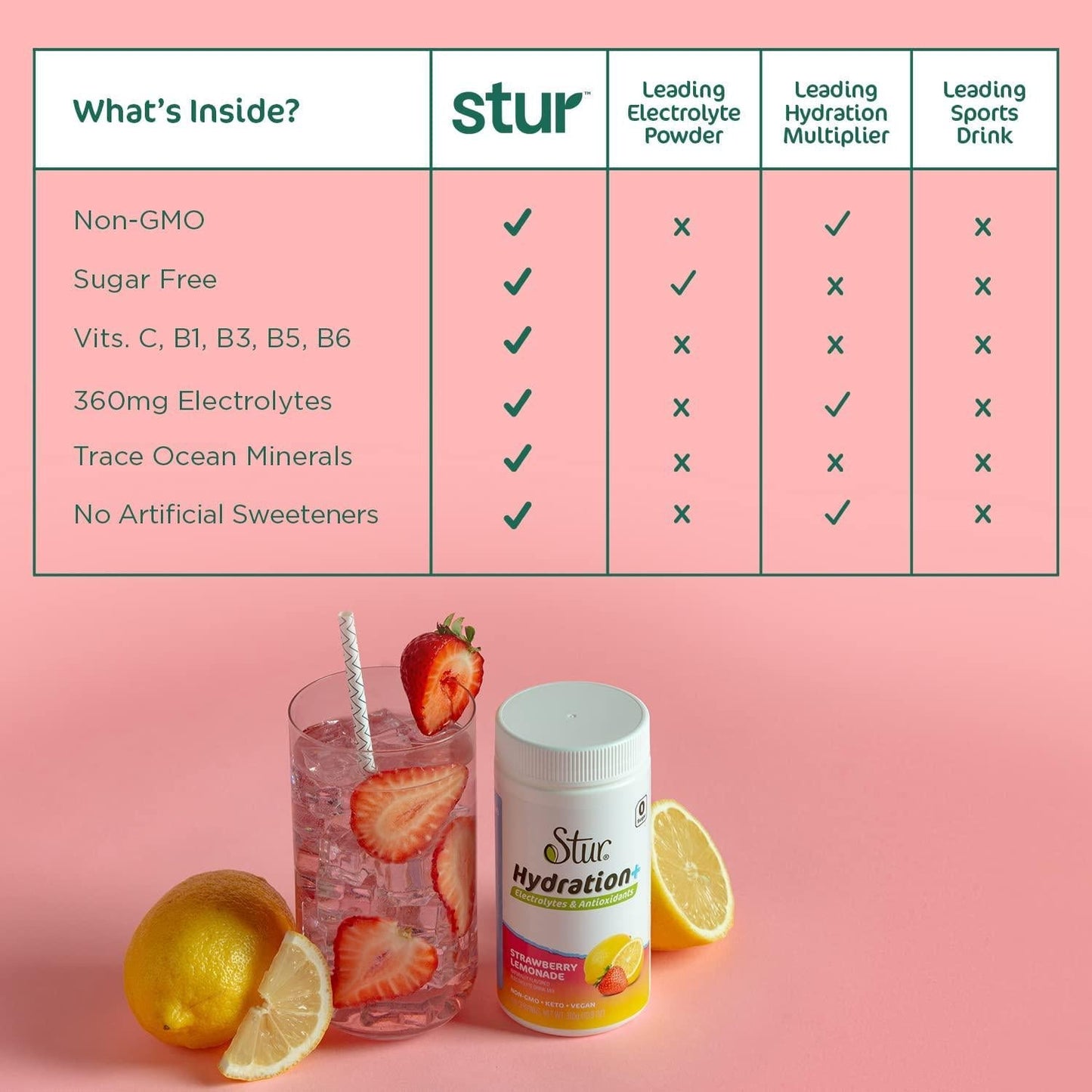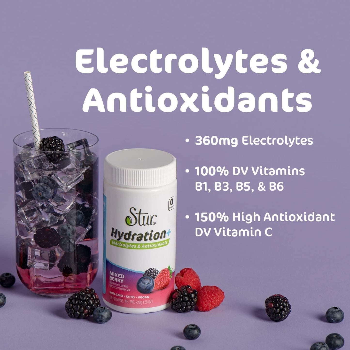 antioxidants, b vitamins, lemon tea, stur electrolyte hydration powder, sugar free, usa, vegan