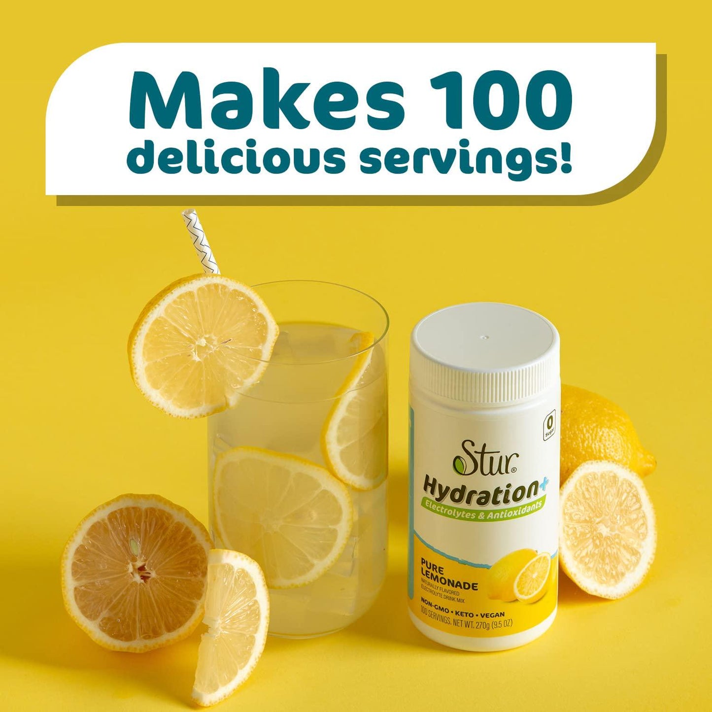 Stur Electrolyte Hydration Powder | Lemon Tea | Sugar Free | 100 Servings | High Antioxidants and B Vitamins | Non-GMO | Daily Hydration and Workout Recovery | Keto | Vegan(10.7 oz)