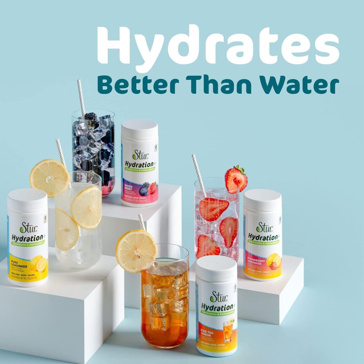 Stur Electrolyte Hydration Powder | Lemon Tea | High Antioxidants & B Vitamins | Sugar Free | Non-GMO | Daily Hydration & Workout Recovery | Keto | Paleo | Vegan (10.7 oz)
