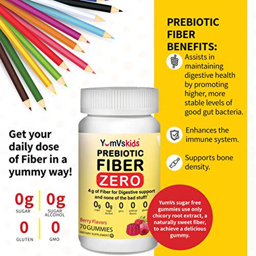 Sugar Free Fiber Gummies for Kids by YumVs | Zero Keto Prebiotic Gummy Chews for Toddlers | 4 g Fiber for Children Constipation Support | Natural Kosher Halal Berry Chewable | 2-Pack, 70 Count Each Sugar Free Fiber Gummies for Kids by YumVs | Zero Keto Prebiotic Gummy Chews for Toddlers | 4 g Fiber for Children Constipation Support | Natural Kosher Halal Berry Chewable | 2-Pack, 70 Count Each