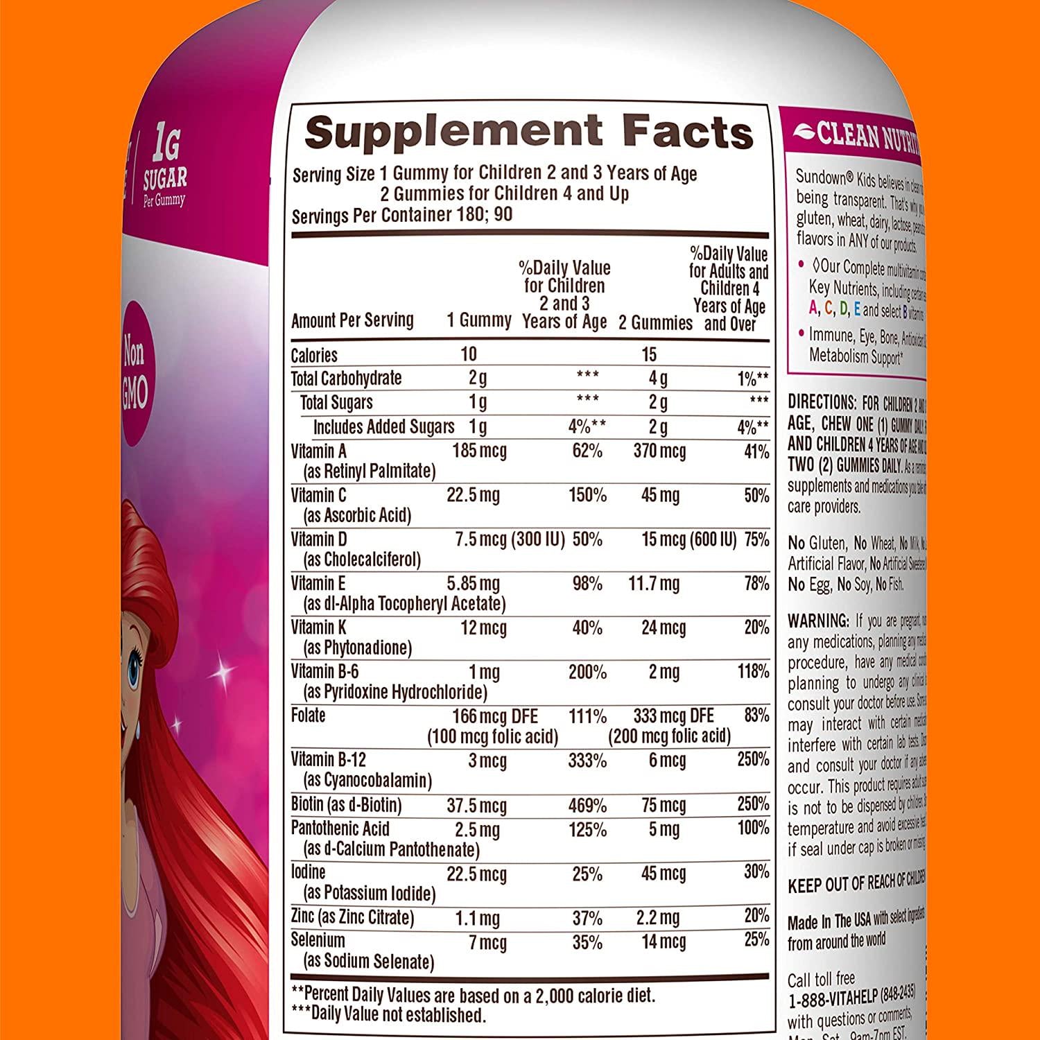disney princess, gummy vitamins, kids, multivitamin, pediatrician preferred, sundown