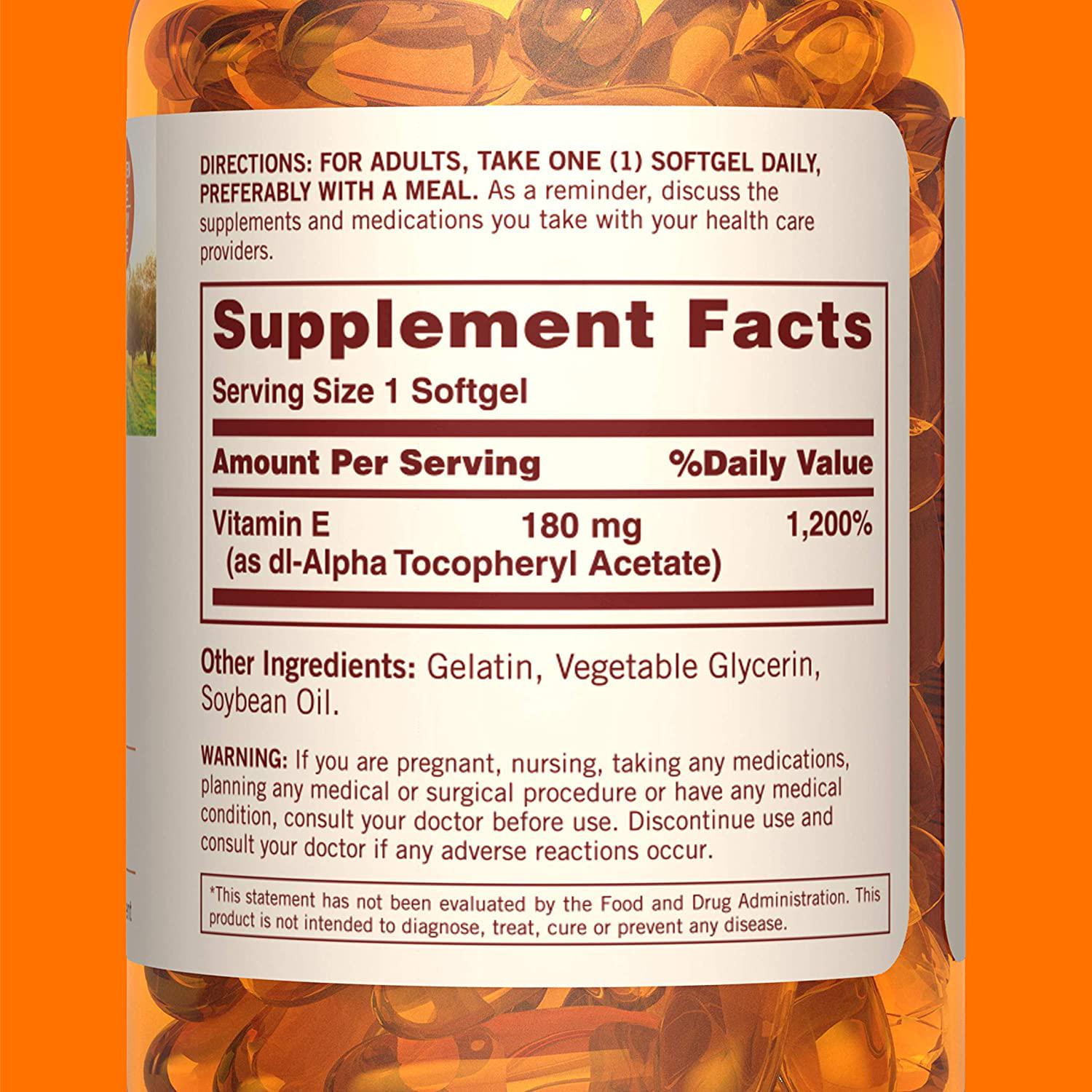 Millions of customers trust Sundown to deliver natural, high-quality supplements. Low-quality alternatives often use unnecessary synthetic fillers, artificial flavors, harsh preservatives and ingredients your body cant use. We pride ourselves in crafting clean vitamins that are always non-GMO(2) and free of artificial flavors. This health supplement is gluten-free, wheat-free, dairy-free and lactose-free. Guaranteed. Our oil-based vitamin E softgels come in a naturally-occuring (found in food) tocopherol form. That means your body can quickly absorb and use this nutrient. Its easy to swallow and has no aftertaste. Our supplements are third-party lab tested for safety, quality and purity. Sundown has been delivering wellness support to families worldwide for over 40 years.Vitamin E is an important, fat-soluble nutrient that maintains many important body functions. It plays a large role in immune and heart health(3). Free radicals can come from cigarette smoke, UV rays, air pollution and even your own body. They may cause cell damage and premature aging(3). Vitamin E fights free radicals and supports your bodys natural defenses.(3) Recently, Vitamin E has also been spotlighted in the beauty industry for its moisturizing and anti-aging properties. It can be used directly on skin, hair and nails to give them a healthy shine.(3) Add Sundown Vitamin E softgels to your daily routine now - scroll up to add to cart!