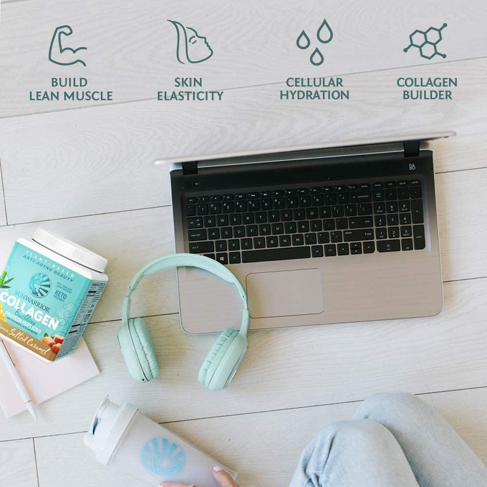 Sunwarrior Plant-Based Collagen Building Protein Peptides, Organic and Vegan Protein Powder, Hyaluronic Acid, and Biotin (Salted Caramel, 500G)