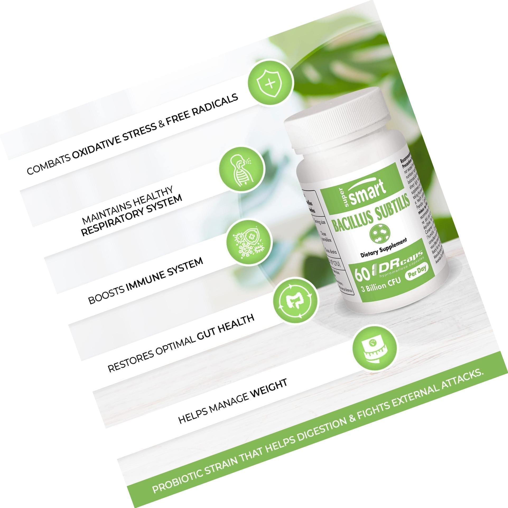 Supersmart - Bacillus Subtilis 3 Billion CFU - Probiotic Strain - Improve Natural Defences and Help with External Infection | Non-GMO and Gluten Free - 60 DR Capsules