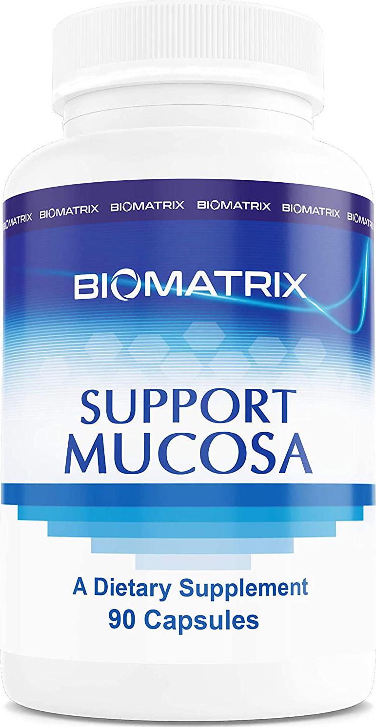 BIOMATRIX SUPPORT MUCOSA: NUTRIENTS TO HEAL AND PROTECT THE INTESTINAL BARRIER Repairs the damage caused by leaky gut. Reduces inflammation in the GI tract. Increases secretory IgA production by repairing epithelial cells. Helps to improve nutrient absorption of micronutrients and macronutrients. THE GUT BARRIER Under ideal conditions, the GI tract contains a mucosal barrier that protects against toxins and other potentially dangerous microorganisms crossing through the intestinal wall into the bloodstream. Damage to the mucosa largely due to inflammation caused by food intolerances, chemicals, and infectious organisms harms the integrity of its protective abilities. SUPPORT MUCOSA: THE FORMULA Support Mucosa contains a blend of ingredients that reduces GI inflammation and restores damaged tissue. It is ideal for those with chronic digestive disorders and health problems, which occur when the small intestine becomes inflamed and excessively permeable due to leaky gut syndrome, chemical exposure, yeast overgrowth, allergies, parasites, infections, and more. The restorative and soothing ingredients MSM, bromelain, quercetin, N-Acetyl-D-Glucosamine, and gamma oryzanol allow the gut mucosa to bind to the intestinal wall, while glutamine restores the mucosal barrier cells deep within the tissue lining. MUCOSAL REGENERATION The amino acid l-glutamine rebuilds the mucosal barrier tissues - while bromelain, biotin and gamma oryzanol possess anti-inflammatory properties. Slippery elm bark and eleuthero root assist with the production of new, healthy mucosa cells while hawthorne extract promotes blood flow to the membrane. Licorice root extract coats the intestinal lining, stabilizing the tissues and facilitating efficient repair. IMMUNE DEFENSE LIVER SUPPORT By nourishing and repairing the intestinal wall, milk thistle seed and turneric root extracts alleviate some of the stress placed on the liver.