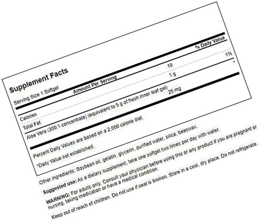 25mg softgels, aloe vera softgels, digestive health supplement, swanson aloe vera