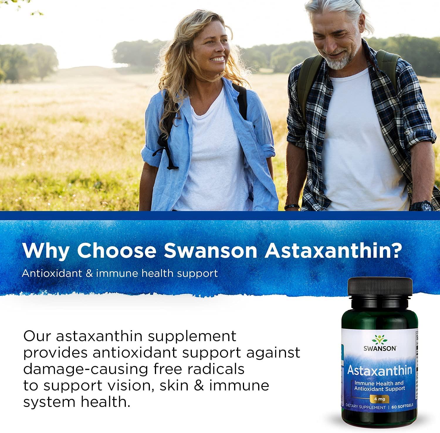 - PROMOTES HEALTHY SKIN & ANTIOXIDANT ACTIVITY - With 4 mg of astaxanthin per 1 softgel serving, Swanson Astaxanthin delivers vital nutrition to help protect the health and function of the skin, plus promote antioxidant activity in the body. Optimize your free-radical defenses and boost antioxidant activity since astaxanthin has a molecular structure that makes it remarkably effective at neutralizing free radicals