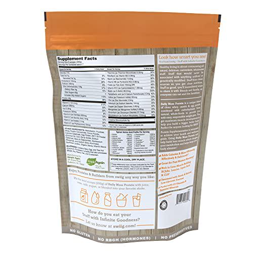 swiig Mass Builder Protein Powder, Chocolate, No GMO Ingredients, No Artificial Flavors, Colors or Sweeteners, No Fillers, Dietary Supplement, 3.3 Pound Bag Daily Mass Protein Builder is a unique blend of clean Whey protein combined with carbohydrates from natural, whole-foods to provide you with easy, responsible weight gain. You get maximum muscle development to help you build a bigger, better body. Perfect for anyone looking for MASSContains: Maltodextrin, Crystalline Fructose, Cold Filtered Whey Protein Concentrate, Calcium Caseinate, Cocoa, Egg White Albumin, Creatine Monohydrate, Medium Chain Triglycerdes, Stevia, Vitamin & Mineral Blend (Ascorbic Acid, Niacinamide, Zinc Gluconate, Vitamin A Palmitate, D-Calcium Pantothenate, D-Alpha Tocopheryl Acetate, Sodium Selenite, Copper Gluconate, Ferric Orthophosphate, Manganese Sulfate, Thiamin Mononitrate, Pyridoxine Hydrochloride, Riboflavin, Chromium Chloride, Folic Acid, Biotin, Sodium Molybdate, Cholecalciferol, Potassium Iodide, Cyanocobalamin).Allergen information:This product is produced on equipment which processes soy, eggs & nuts. Please keep all supplements out of childrens reach.