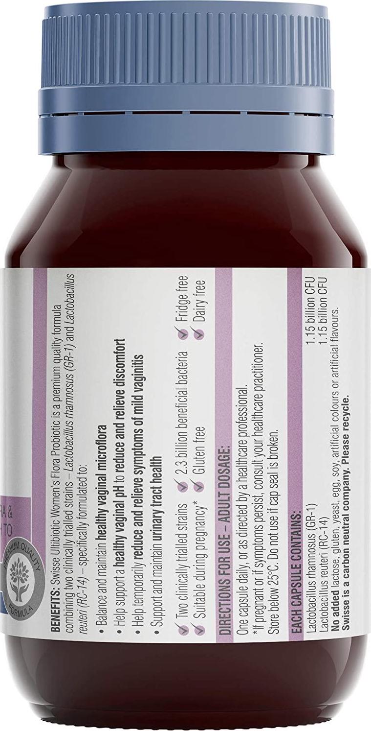 Swisse Ultibiotic Women's Flora Probiotic is a premium quality formula combining two clinically trialled strainsLactobacillus rhamnosus (GR-1) and Lactobacillus reuteri (RC-14).