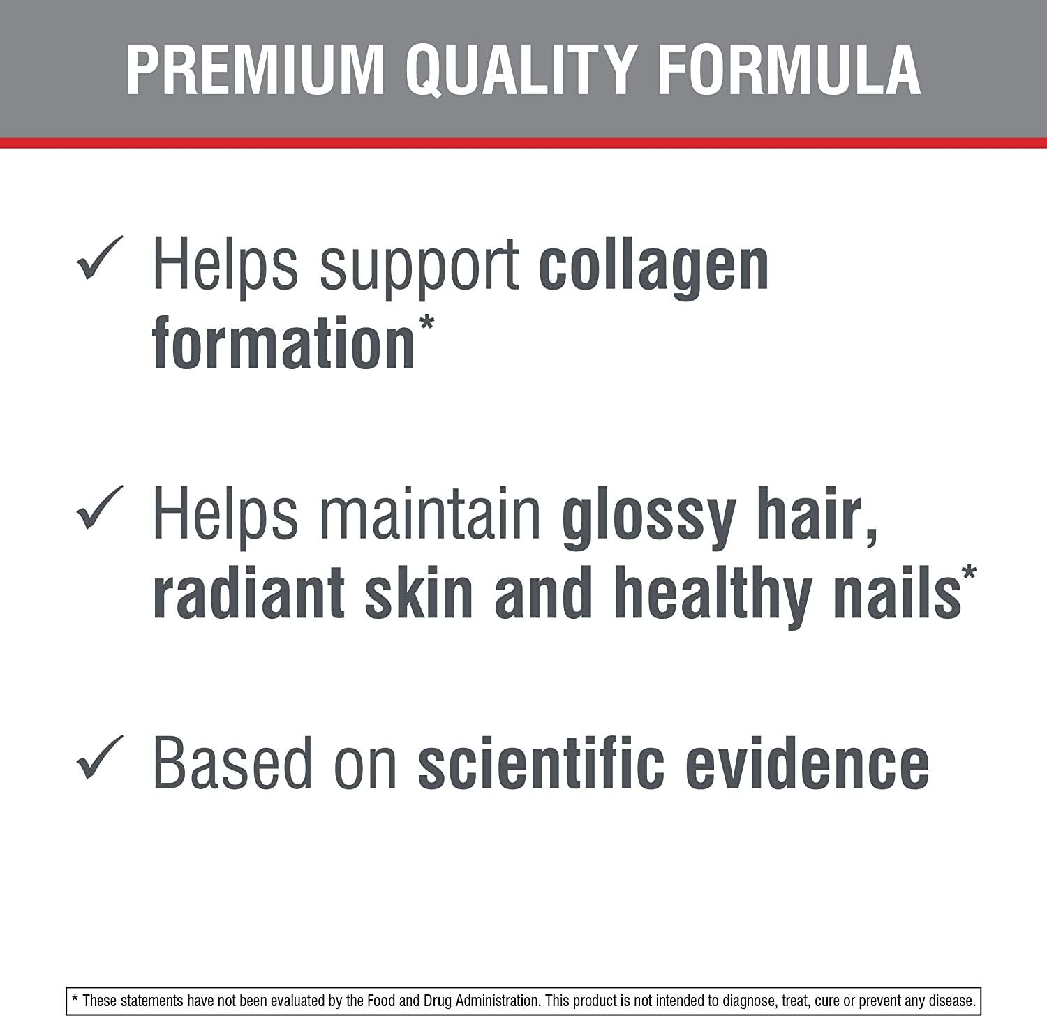 - COLLAGEN FORMATION: Collagen is a major structural protein that maintains healthy hair, skin, and nails. Each bottle of this supplement contains both Vitamin C and Silica - two necessary ingredients in promoting proper collagen production.