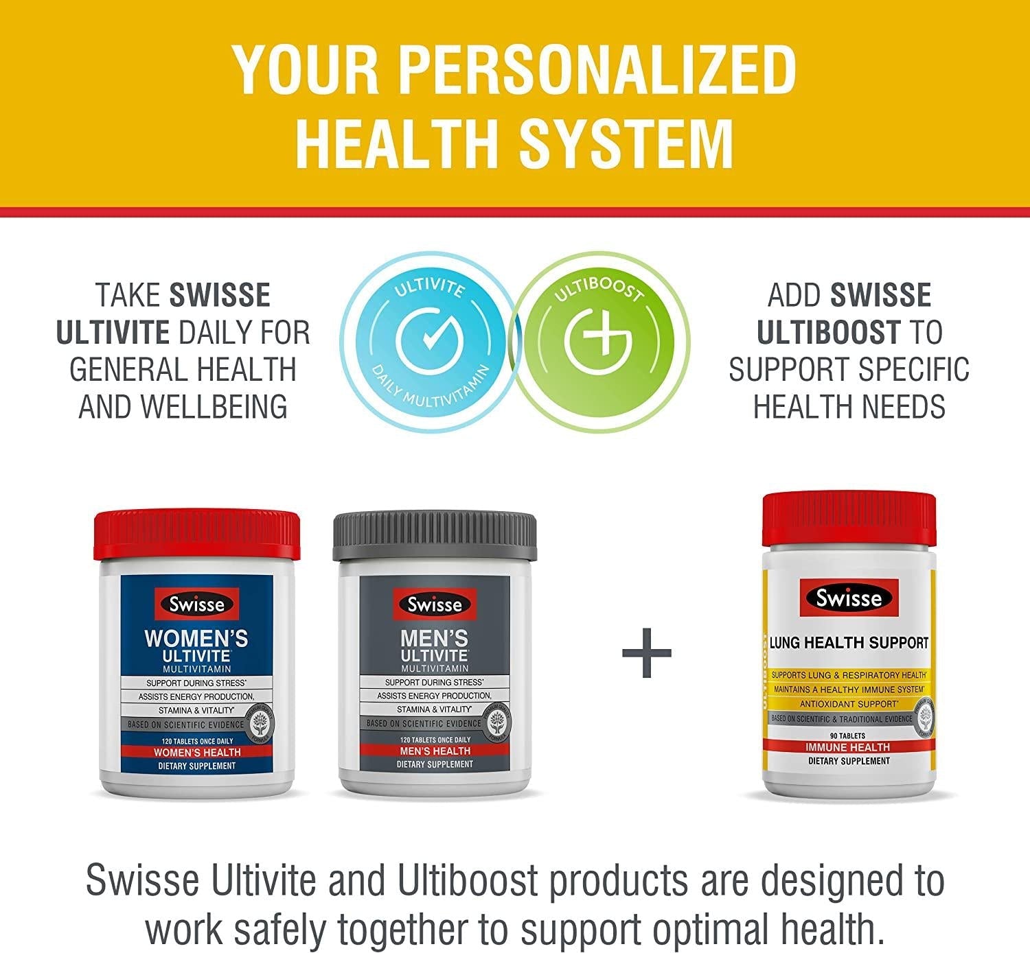 Swisse Ultiboost Lung Health Support Supplement. Our Swisse Ultiboost Lung Health Support tablets are specifically formulated to support your lung and respiratory health, as well as maintain a strong immune system.