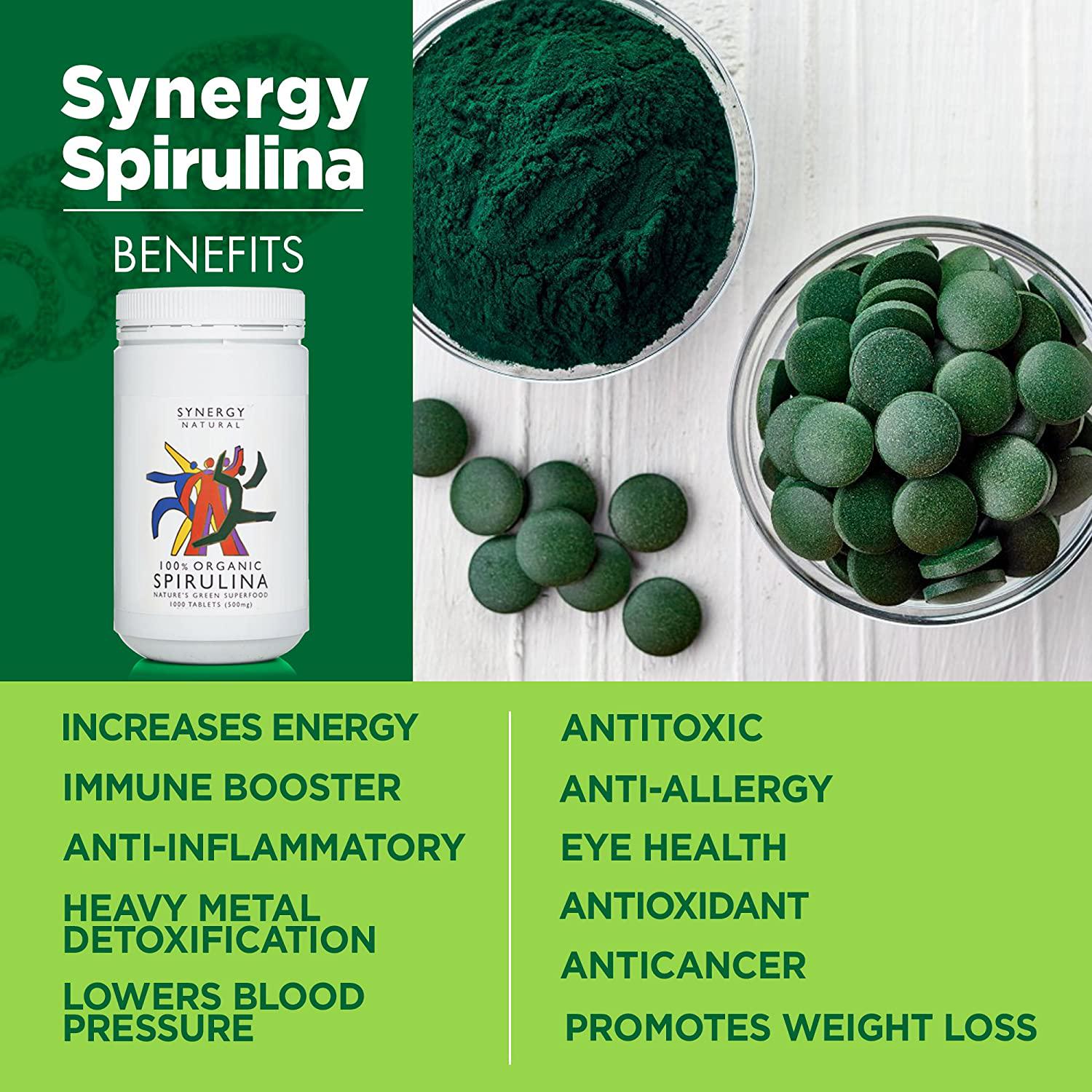 Synergy Natural Organic Spirulina Tablet is a natures richest and most complete source of nutrition. This green superfood containing over 100 synergistic nutrients comes from a microscopic freshwater plant, ecologically grown without chemicals and concentrated by removing nothing but the water. Spirulina is widely used throughout the world as a food supplement for maintaining health, energy and optimum weight.