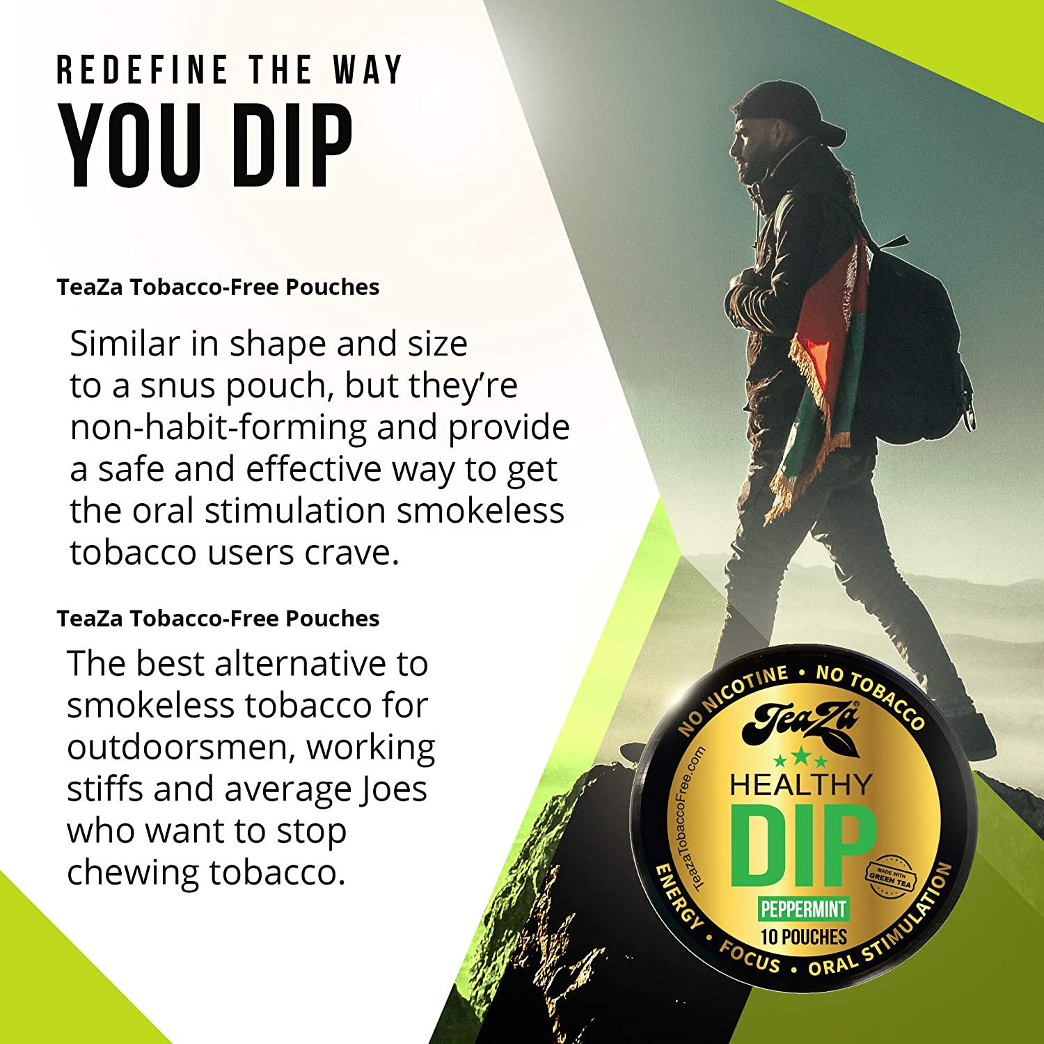 - Redefine the way you dip and stop chewing tobacco with TeaZa tobacco free pouches the best alternative to smokeless tobacco.