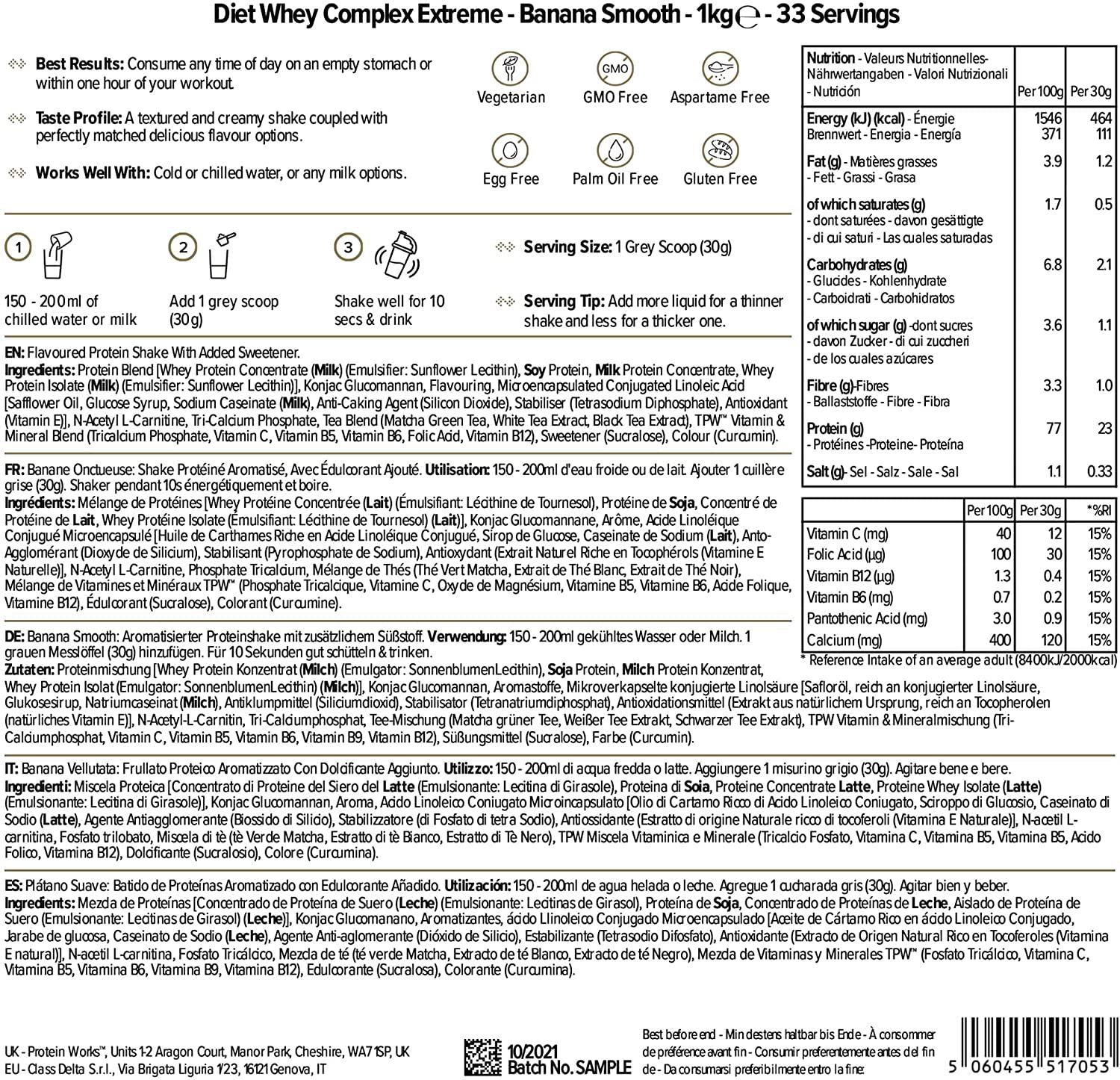 THE PROTEIN WORKS Diet Whey Complex Extreme Protein Powder| Low Fat and Low Calorie Diet Shake | Vitamin and Mineral Rich | No Added Sugar | Banana Smooth | 1 Kg