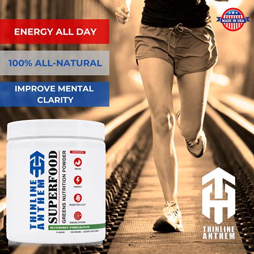 Thinline Anthem Superfood Greens Nutrition Powder (30 Servings) - Blueberry and Pomegranate Flavor Supplement - for Detox, Energy Boost, Immune Health and Better Digestion - Natural Dietary Supplement